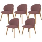 Kit 05 Cadeiras De Jantar E Estar Living Estofada Mia L02 Suede Rosê - Lyam Decor O Kit 05 Cadeiras de Jantar e Estar Living Estofada Mia, da Lyam Decor, é a combinação perfeita de design orgânico, conforto e modernidade, expressos em cada detalhe, desde as linhas curvas do assento e encosto até os pés de madeira maciça envernizada. Em outras palavras, essa cadeira estofada é ideal para complementar sua sala de jantar ou estar com elegância e estilo. Além disso, a tapeçaria feita com espuma D-26 oferece um conforto excepcional, permitindo que você desfrute de momentos prazerosos durante suas refeições ou conversas com amigos e familiares. Para completar, essa cadeira de jantar moderna é perfeita para quem busca uma sala de jantar contemporânea, já que seu design único traz uma sensação de beleza e sofisticação ao ambiente e, ainda, harmoniza facilmente com diversos estilos de mesa de jantar. Ah, mas além da sala de jantar, você também pode aproveitá-la como assento extra na sala de estar, recepção, escritório e até mesmo no quarto, ou seja, uma cadeira de madeira versátil como você sempre quis. Então, que tal garantir bem-estar e beleza em um único produto? Adquira agora a Cadeira Mia e transforme seu ambiente em um espaço acolhedor, elegante e cheio de personalidade.Dimensões do produto (L x A x P) 56 cm x 81 cm x 54 cmMedidas internas Altura do assento ao chão: 47 cm Profundidade do assento: 43 cm Altura do encosto: 38 cm Peso aproximado: 8 kgCaracterísticas: Estrutura de Madeira de Eucalipto tratado de reserva legalizada, correto ecologicamente. Revestimento em Suede na cor Rosê. Assento e encosto com espuma D-26. Peso máximo suportado por cadeira até 150 kg. Pés em madeira envernizados. Design orgânico, com linhas curvas. Produto entregue montado.- Por se tratar de estofado as medidas podem ter uma pequena variação de até 3 cm. - A tonalidade do produto real poderá ter ligeira variação devido o lote de tecidos. - A limpeza deve ser feita com pano levemente umedecido em água limpa, sem esfregar, não utilizar produtos abrasivos, desengordurantes, álcool ou solvente.Observações importantes: - Produto para uso residencial em ambiente interno, não devendo ficar exposto diretamente ao sol, calor e umidade excessivos. - Pode haver alguma diferença de tonalidade entre a imagem e o produto real, por conta do tratamento de imagens e a calibração de cores do seu monitor. - As imagens são meramente ilustrativas, não acompanham objetos de decoração e eletrônicos. - Ao receber a mercadoria, o cliente deve verificar as condições da embalagem, caso haja alguma avaria não assine o comprovante de recebimento. - Montagem, desmontagem e outras instalações serão de responsabilidade do cliente. Não nos responsabilizamos, no ato da entrega, por subir escadas/elevadores ou pelo transporte por guincho em apartamentos. Eventuais despesas são de responsabilidade do comprador. - Confira as dimensões do produto e certifique-se de que passará normalmente por supostos elevadores, portas, escadas e/ou corredores de sua residência. ColorFamily: Rosa | MaterialFamily: Madeira, Suede e espuma | ColorSupplier: Rosê | ProductWidth: 56 cm | ProductWarranty: 90 dias após o recebimento do produto | SizeDescription: Altura: 81 cm x Largura: 56 cm x Profundidade: 54 cm | ProductInstructions: Produto para uso em ambiente interno, nao devendo ficar exposto ao sol, calor e umidade excessivos. | ProductLength: 54 cm | ProductContents: 05 Cadeiras | Color: Rosa | SupplierSimpleName: Kit 05 Cadeiras de Jantar e Estar Living Estofada Mia L02 Suede Rosê - Lyam Decor | OriginCountry: Brasil | OriginState: PR | ProductHeight: 81 cm | ProductWeight: 35 kg | Model: Mia | Material: Estrutura em Madeira, Revestimento em Suede e espuma | ColorSimple: Rosa