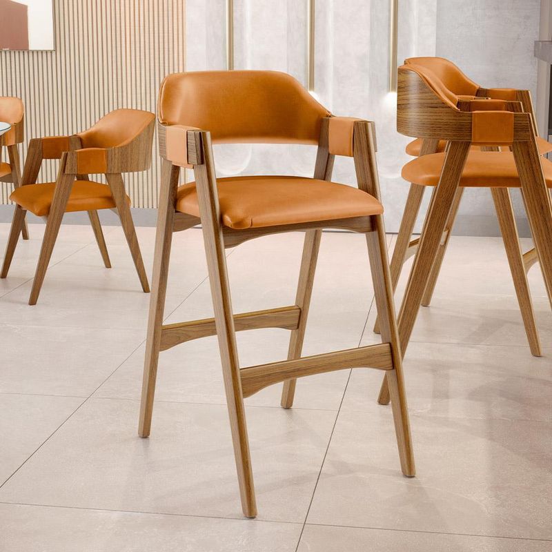 Na cozinha ou qualquer outro ambiente, o Kit 06 Banquetas Altas Suran, da Lyam Decor, se destaca com seu design moderno e elegante. Com uma estrutura de madeira que exala sofisticação, essa banqueta estofada é o convite perfeito para momentos de descontração e sabor. O estofado macio, harmoniza com os demais elementos do ambiente, além de proporcionar conforto enquanto se saboreia um café da manhã preguiçoso ou uma taça de vinho ao entardecer. Já o encosto curvo e os braços delicadamente projetados abraçam o corpo, transformando cada instante em uma experiência acolhedora. Ideal para a ilha gourmet, onde a criatividade culinária ganha vida, ou para um barzinho que respira estilo, essa banqueta é mais do que um móvel; é um ponto de encontro, um espaço de risadas e histórias compartilhadas. Em cada assento, a promessa de momentos memoráveis. A vida é feita de pequenas celebrações, e essa banqueta alta está pronta para torná-las ainda mais especiais. Adicione ao seu carrinho e aproveite! Dimensões da Banqueta (L x A x P) 54 cm x 105 cm x 72 cm Medidas Internas Largura do assento: 46 cm Profundidade livre do assento: 46 cm Altura do encosto: 30 cm Altura interna dos braços: 16 cm Altura dos braços ao chão: 93 cm Altura do assento ao chão: 76 cm Altura do apoio de pé ao chão: 36 cm Características: Estrutura em madeira de reflorestamento Taeda com acabamento envernizado na tonalidade Castanho. Revestimento em Couríssimo de alta qualidade na tonalidade Whiskyl. Encosto ergonômico fixo. Assento estofado fixo composto por espuma D-23. Braços com alças laterais revestidas. Suporta até 120 kg cada. Produto entregue montado. - Por se tratar de estofado as medidas podem ter uma pequena variação de até 3 cm. - A tonalidade do produto real poderá ter ligeira variação devido o lote de tecidos. - A limpeza deve ser feita com pano levemente umedecido em água limpa, sem esfregar, não utilizar produtos abrasivos, desengordurantes, álcool ou solvente. Observações importantes: - Produto para uso residencial em ambiente interno, não devendo ficar exposto diretamente ao sol, calor e umidade excessivos. - Pode haver alguma diferença de tonalidade entre a imagem e o produto real, por conta do tratamento de imagens e a calibração de cores do seu monitor. - As imagens são meramente ilustrativas, não acompanham objetos de decoração e eletrônicos. - Ao receber a mercadoria, o cliente deve verificar as condições da embalagem, caso haja alguma avaria não assine o comprovante de recebimento. - Montagem, desmontagem e outras instalações serão de responsabilidade do cliente. Não nos responsabilizamos, no ato da entrega, por subir escadas/elevadores ou pelo transporte por guincho em apartamentos. Eventuais despesas são de responsabilidade do comprador. - Confira as dimensões do produto e certifique-se de que passará normalmente por supostos elevadores, portas, escadas e/ou corredores de sua residência.