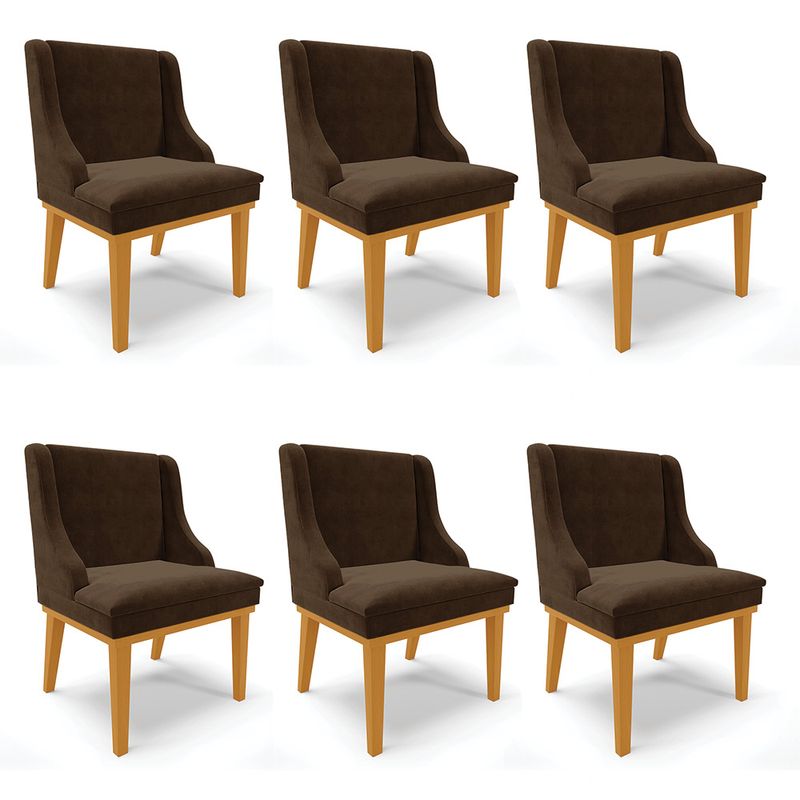 Experimente deixar sua decoração com bom gosto e qualidade com a cadeira de jantar Liz. É perfeita para você não abre mão de qualidade e requinte na hora das refeições e confraternizações com amigos e familiares. Produzida com Base Fixa Madeira Castanho que suportam até 120 kg, estrutura ecologicamente correta de madeira de eucalipto e pinus, oferece durabilidade e qualidade ao móvel, seu estofamento é com espuma de densidade D-23, revestido em tecido suede no tom Marrom. Sofisticada e excelente para deixar sua sala de jantar mais aconchegante. Compre sem sair de casa! Dimensões Altura total: 87 cm Largura total: 55 cm Profundidade total: 55 cm Altura do encosto: 40 cm Largura do assento: 45 cm Profundidade do assento: 50 cm Altura do chão ao assento: 47 cm Espessura do assento: 10 cm Tamanho da base: 34 cm Peso: 14 kg Especificações do Produto Estrutura: Madeira Eucalipto Espuma: D-23 Tecido: Suede Tipo de pés: Base Fixa Madeira Castanho Peso suportado: Até 120 Kg Garantia: 90 dias contra defeito de fabricação Montagem: O produto vai montado, apenas parafusar base Instruções de limpeza: Utilizar um pano limpo e levemente úmido Você irá receber: 03 Volumes com 06 Cadeira Observações Relevantes - Todos os produtos vão embalados com total segurança; - As cores dos produtos podem sofrer alterações dependendo do seu monitor; - Para futuras compras, não garantimos a mesma tonalidade de cor, pois existe variação a cada lote do fabricante do tecido; - As imagens são meramente ilustrativas, não acompanham objetos de decoração e eletros; - Confira as dimensões do produto no momento da compra e certifique-se de que passará normalmente por escadas, elevadores, portas e corredores; - Importante: Por se tratar de estofado as medidas podem ter uma pequena variação em até 3 cm; - Não nos responsabilizamos no ato da entrega por montagens, desmontagens, instalações de produtos; - Não nos responsabilizamos no ato da entrega por subir escadas, elevadores, nem utilização de guinchos ou equipamentos similares para acesso a pisos superiores em apartamentos; - A entrega do produto é realizada em todo território nacional, até onde as rodovias alcançam, entregas fluviais ou aéreas devem ser cotadas a parte; - Observando as orientações acima, evita-se futuros desagrados ou imprevistos com a entrega do produto. Havendo despesas adicionais, serão de responsabilidade do cliente;