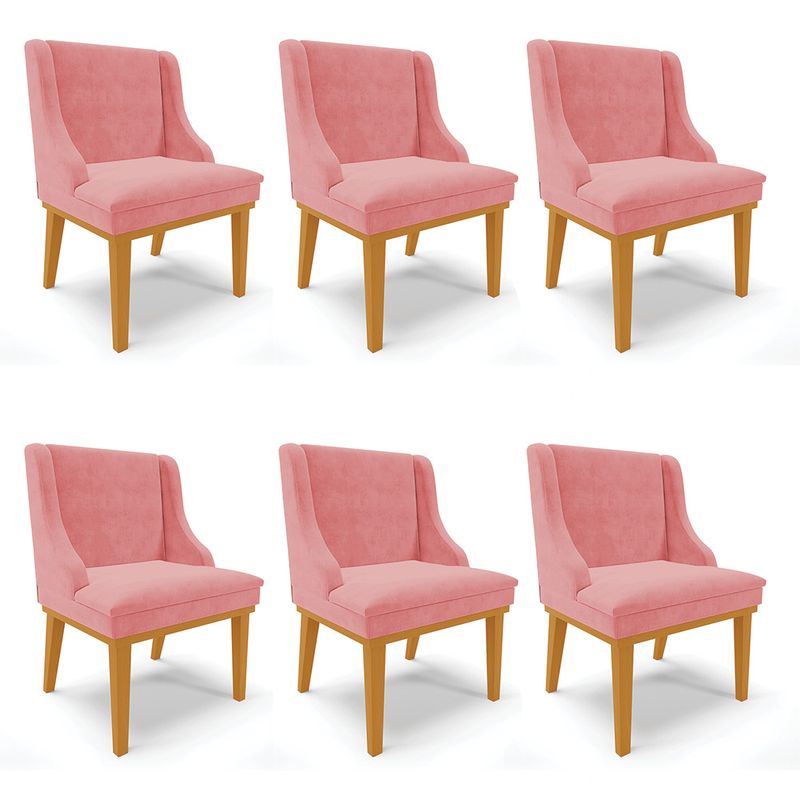 Experimente deixar sua decoração com bom gosto e qualidade com a cadeira de jantar Liz. É perfeita para você não abre mão de qualidade e requinte na hora das refeições e confraternizações com amigos e familiares. Produzida com Base Fixa Madeira Castanho que suportam até 120 kg, estrutura ecologicamente correta de madeira de eucalipto e pinus, oferece durabilidade e qualidade ao móvel, seu estofamento é com espuma de densidade D-23, revestido em tecido suede no tom Rosê. Sofisticada e excelente para deixar sua sala de jantar mais aconchegante. Compre sem sair de casa! Dimensões Altura total: 87 cm Largura total: 55 cm Profundidade total: 55 cm Altura do encosto: 40 cm Largura do assento: 45 cm Profundidade do assento: 50 cm Altura do chão ao assento: 47 cm Espessura do assento: 10 cm Tamanho da base: 34 cm Peso: 14 kg Especificações do Produto Estrutura: Madeira Eucalipto Espuma: D-23 Tecido: Suede Tipo de pés: Base Fixa Madeira Castanho Peso suportado: Até 120 Kg Garantia: 90 dias contra defeito de fabricação Montagem: O produto vai montado, apenas parafusar base Instruções de limpeza: Utilizar um pano limpo e levemente úmido Você irá receber: 03 Volumes com 06 Cadeira Observações Relevantes - Todos os produtos vão embalados com total segurança; - As cores dos produtos podem sofrer alterações dependendo do seu monitor; - Para futuras compras, não garantimos a mesma tonalidade de cor, pois existe variação a cada lote do fabricante do tecido; - As imagens são meramente ilustrativas, não acompanham objetos de decoração e eletros; - Confira as dimensões do produto no momento da compra e certifique-se de que passará normalmente por escadas, elevadores, portas e corredores; - Importante: Por se tratar de estofado as medidas podem ter uma pequena variação em até 3 cm; - Não nos responsabilizamos no ato da entrega por montagens, desmontagens, instalações de produtos; - Não nos responsabilizamos no ato da entrega por subir escadas, elevadores, nem utilização de guinchos ou equipamentos similares para acesso a pisos superiores em apartamentos; - A entrega do produto é realizada em todo território nacional, até onde as rodovias alcançam, entregas fluviais ou aéreas devem ser cotadas a parte; - Observando as orientações acima, evita-se futuros desagrados ou imprevistos com a entrega do produto. Havendo despesas adicionais, serão de responsabilidade do cliente;