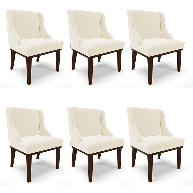 Experimente deixar sua decoração com bom gosto e qualidade com a cadeira de jantar Liz. É perfeita para você não abre mão de qualidade e requinte na hora das refeições e confraternizações com amigos e familiares. Produzida com Base Fixa Madeira Tabaco que suportam até 120 kg, estrutura ecologicamente correta de madeira de eucalipto e pinus, oferece durabilidade e qualidade ao móvel, seu estofamento é com espuma de densidade D-23, revestido em tecido Veludo. Sofisticada e excelente para deixar sua sala de jantar mais aconchegante. Compre sem sair de casa! Dimensões Altura total: 87 cm Largura total: 55 cm Profundidade total: 55 cm Altura do encosto: 40 cm Largura do assento: 45 cm Profundidade do assento: 50 cm Altura do chão ao assento: 47 cm Espessura do assento: 10 cm Tamanho da base: 34 cm Peso: 14 kg Especificações do Produto Estrutura: Madeira Eucalipto Espuma: D-23 Tecido: Veludo Tipo de pés: Base Fixa Madeira Tabaco Peso suportado: Até 120 Kg Garantia: 90 dias contra defeito de fabricação Montagem: O produto vai montado, apenas parafusar base Instruções de limpeza: Utilizar um pano limpo e levemente úmido Você irá receber: 03 Volumes com 06 Cadeiras Observações Relevantes - Todos os produtos vão embalados com total segurança; - As cores dos produtos podem sofrer alterações dependendo do seu monitor; - Para futuras compras, não garantimos a mesma tonalidade de cor, pois existe variação a cada lote do fabricante do tecido; - As imagens são meramente ilustrativas, não acompanham objetos de decoração e eletros; - Confira as dimensões do produto no momento da compra e certifique-se de que passará normalmente por escadas, elevadores, portas e corredores; - Importante: Por se tratar de estofado as medidas podem ter uma pequena variação em até 3 cm; - Não nos responsabilizamos no ato da entrega por montagens, desmontagens, instalações de produtos; - Não nos responsabilizamos no ato da entrega por subir escadas, elevadores, nem utilização de guinchos ou equipamentos similares para acesso a pisos superiores em apartamentos; - A entrega do produto é realizada em todo território nacional, até onde as rodovias alcançam, entregas fluviais ou aéreas devem ser cotadas a parte; - Observando as orientações acima, evita-se futuros desagrados ou imprevistos com a entrega do produto. Havendo despesas adicionais, serão de responsabilidade do cliente;