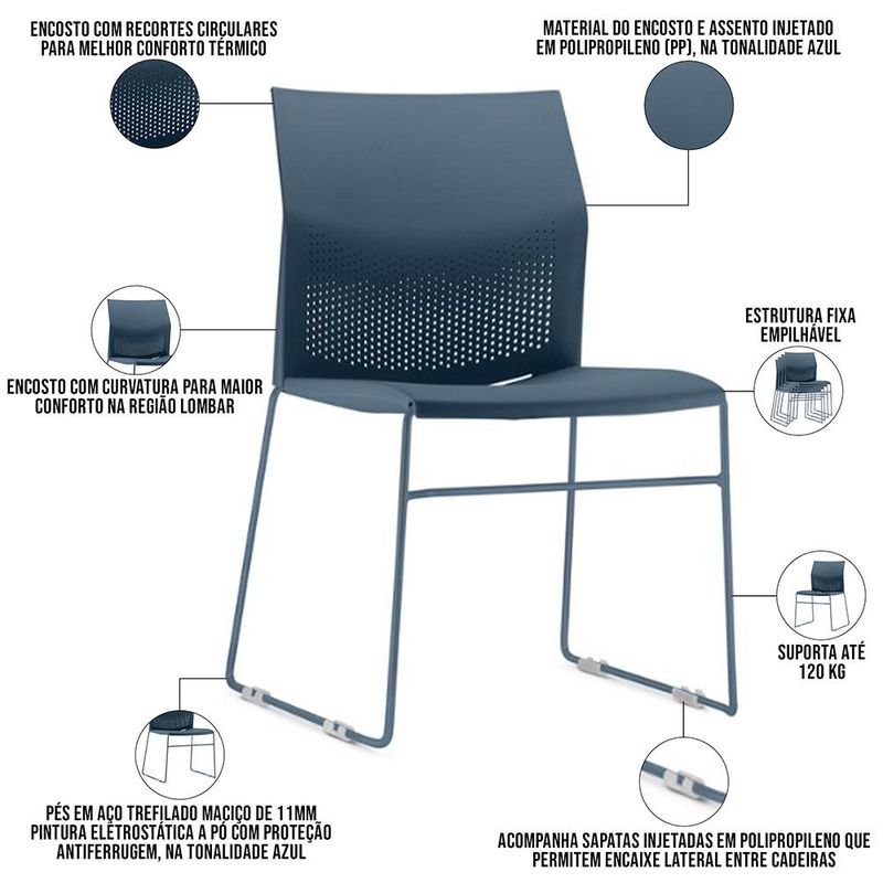 Descubra o Kit 06 Cadeiras Fixa Empilhável Link, da Lyam Decor, a solução perfeita para quem busca funcionalidade e elegância em um só produto! Feita em polipropileno de alta qualidade e com uma robusta base em aço trefilado, essa cadeira empilhável é ideal para transformar qualquer espaço comercial ou corporativo. Seja em escolas, escritórios, refeitórios, salões de eventos ou aonde mais você precisar, a Cadeira Link se adapta com facilidade e charme. Sua estrutura leve e empilhável facilita o armazenamento, enquanto as sapatas conectoras permitem unir várias unidades, proporcionando uma organização impecável e eficiente. Crie ambientes flexíveis e dinâmicos, prontos para receber todos os tipos de eventos e reuniões com estilo e conforto. Experimente a Cadeira Link e leve inovação ao seu espaço! Dimensões da Cadeira (L x A x P) 55,5 x 82 x 55 cm Medidas Internas: Altura do chão ao assento: 44,5 cm Encosto (L x A): 46,2 x 44,5 cm Profundidade dos pés: 52 cm Largura interna entre os pés: 44,5 cm Profundidade interna entre os pés: 48 cm Características: Material do encosto e assento injetado em Polipropileno (PP), na tonalidade Azul. Pés em aço trefilado maciço de 11mm com pintura eletrostática a pó com proteção antiferrugem, na tonalidade Azul. Encosto com recortes circulares para melhor conforto térmico. Encosto com curvatura para maior conforto na região lombar. Acompanha sapatas injetadas em polipropileno que permitem encaixe lateral entre Cadeiras Fixa, possibilitando o alinhamento e organização em espaços coletivos, e prevenção de riscos no piso quando em contato com a superfície Peso máximo suportado 120 kg. Estrutura fixa empilhável. Produto 100% Nacional. - Nunca sentar nos braços ou encosto do produto. - Indicado para uso residencial, sua limpeza deve ser feita com pano levemente umedecido em água limpa, sem esfregar, não utilizar produtos abrasivos, desengordurantes, álcool ou solvente. Observações importantes: - Produto para uso residencial em ambiente interno, não devendo ficar exposto diretamente ao sol, calor e umidade excessivos. - Pode haver alguma diferença de tonalidade entre a imagem e o produto real, por conta do tratamento de imagens e a calibração de cores do seu monitor. - As imagens são meramente ilustrativas, não acompanham objetos de decoração e eletrônicos. - Ao receber a mercadoria, o cliente deve verificar as condições da embalagem, caso haja alguma avaria não assine o comprovante de recebimento e entre em contato com nossa loja para orientações. - Montagem, desmontagem e outras instalações serão de responsabilidade do cliente. Não nos responsabilizamos, no ato da entrega, por subir escadas/elevadores ou pelo transporte por guincho em apartamentos. Eventuais despesas são de responsabilidade do comprador. - Confira as dimensões do produto e certifique-se de que passará normalmente por supostos elevadores, portas, escadas e/ou corredores de sua residência. - Para mais informações, acesse nossa Central de Atendimento.