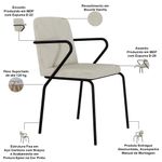 O Kit 06 Cadeiras de Jantar Loft combina design moderno, conforto e funcionalidade, sendo ideal para compor salas de jantar, cozinhas gourmet e ambientes integrados com muito estilo. Seu encosto e assento estofados proporcionam conforto e ergonomia para o uso diário e para momentos prolongados à mesa. A estrutura em tubo de aço com pintura epóxi garante resistência, durabilidade e um visual leve, reforçando o caráter moderno da peça. Com linhas bem definidas e estética atemporal, a Cadeira Loft se adapta facilmente a diferentes propostas de decoração, valorizando o ambiente com sofisticação e personalidade. Dimensões da Cadeira (L x A x P) 49 x 85 x 58 cm Altura do chão ao assento: 48,2 cm Largura do encosto: 47,5 cm Altura do encosto: 41 cm Características: Estrutura fixa em aço carbono com braços e acabamento em pintura epóxi na cor preto. Encosto produzido em MDP com espuma D-22 Assento produzido em MDP com espuma D-28 Revestimento em Bouclê Vanilha Peso suportado de até 120 kg. Produto entregue desmontado, acompanha manual de montagem. - Por se tratar de estofado as medidas podem ter uma pequena variação de até 3 cm. - A tonalidade do produto real poderá ter ligeira variação devido o lote de tecidos. - A limpeza deve ser feita com pano levemente umedecido em água limpa, sem esfregar, não utilizar produtos abrasivos, desengordurantes, álcool ou solvente. Observações importantes: - Produto para uso residencial em ambiente interno, não devendo ficar exposto diretamente ao sol, calor e umidade excessivos. - Pode haver alguma diferença de tonalidade entre a imagem e o produto real, por conta do tratamento de imagens e a calibração de cores do seu monitor. - As imagens são meramente ilustrativas, não acompanham objetos de decoração e eletrônicos. - Ao receber a mercadoria, o cliente deve verificar as condições da embalagem, caso haja alguma avaria não assine o comprovante de recebimento. - Montagem, desmontagem e outras instalações serão de responsabilidade do cliente. Não nos responsabilizamos, no ato da entrega, por subir escadas/elevadores ou pelo transporte por guincho em apartamentos. Eventuais despesas são de responsabilidade do comprador. - Confira as dimensões do produto e certifique-se de que passará normalmente por supostos elevadores, portas, escadas e/ou corredores de sua residência.