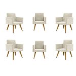 Kit 06 Cadeiras Poltronas Decorativa - Escritório - Recepção Cor:begeA poltrona Nina traz muita segurança e conforto para seu ambiente. Sua estrutura é 100% em madeira Eucalipto e todo conforto se deve a espuma com densidade D-23. Com um design sofisticado, a poltrona Nina conta com acabamento em Suede.PARA QUEM INDICAMOS NOSSAS POLTRONAS ? - Para os amantes da LEITURA; - Para trazer sofisticação para SALA DE ESTAR; - Para trazer aconchego em seu QUARTO; - Para proporcionar comodidade ao seu ESCRITÓRIO ou HOME OFFICE. E claro... Para presentear quem mais amamos! QUAL O MATERIAL UTILIZADO ? - Tecidos suede; - Espuma D-23; - Percintas elásticas; - Estrutura 100% madeira Eucalipto; - Pés madeira de eucalipto. Produto suporta até 100 kg. Garantia de fábrica de 03 meses contra defeito de fabricação. Você receberá:Seis poltronas NINA pés palito. Instruções de montagem: Produto montado, sendo necessário apenas rosquear os pés. Observações importantes: -Todos os produtos vão embalados com total segurança. - Não nos responsabilizamos por montagens, subidas em escadas ou similares no ato da . - Pode haver alguma diferença de tonalidade entre a imagem e o produto, por conta do tratamento de imagens e a calibração de cores da sua tela. Modo de limpeza: - Limpar com pano limpo e moderadamente úmido ESPECIFICAÇÕES TÉCNICAS Travamento da estrutura com grampos em aço galvanizados e parafusos com flange de 5 mm; Acento sustentado por percintas elásticas; Madeira de reflorestamento eucalipto; Tecido suede 100% poliéster. Dimensões Altura: 87 cm Largura: 61 cm Profundidade: 60 cm Peso: 9,5 kg Ficamos a Disposição para qualquer dúvida.