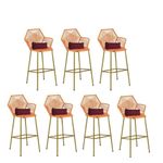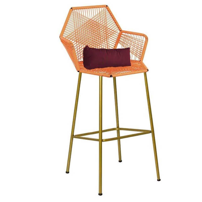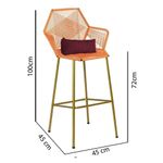 Kit 07 Banqueta Alta Com Encosto Sttar Balcão Ferro Dourado Fibra Laranja Almofada Suede Bordô - Ahazzo MóveisBANQUETA STTAR - Ahazzo MóveisIdeal para agregar elegância e sofisticação ao seu ambiente de forma prática e eficaz.CARACTERÍSTICAS:- Largura: 45 cm;- Altura: 106 cm;- Profundidade: 35 cm;- Altura do chão até o assento: 75 cm;- Produzido em Aço carbono e Material Sintético (fibra);- Recomendamos a utilização para ambientes internas e externos.OBSERVAÇÕES:- Não usar produtos abrasivos no momento da limpeza;- As imagens ambientadas são meramente ilustrativas e podem apresentar itens que não compõe o produto;- Objetos decorativos que aparecem na foto não acompanham o produto;- As cores do produto podem variar de acordo com o monitor, a iluminação do ambiente, ou sua percepção visual;- Confira as dimensões antes da compra e certifique-se de que o produto passará por elevadores, portas e corredores, já que nossa entrega não inclui a subida de lances de escada, ou o lançamento de produtos;- Ao receber seus produtos, verifique no ato do recebimento qualquer dano na embalagem. A transportadora pode esperar a conferência do produto;- Produto para uso residencial em ambiente interno, não devendo ficar exposto diretamente ao sol, calor e umidades excessivas.