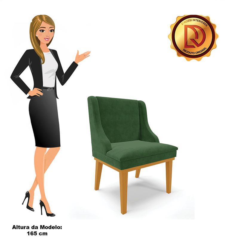 Experimente deixar sua decoração com bom gosto e qualidade com a cadeira de jantar Liz. É perfeita para você não abre mão de qualidade e requinte na hora das refeições e confraternizações com amigos e familiares. Produzida com Base Fixa Madeira Castanho que suportam até 120 kg, estrutura ecologicamente correta de madeira de eucalipto e pinus, oferece durabilidade e qualidade ao móvel, seu estofamento é com espuma de densidade D-23, revestido em tecido suede no tom Verde. Sofisticada e excelente para deixar sua sala de jantar mais aconchegante. Compre sem sair de casa! Dimensões Altura total: 87 cm Largura total: 55 cm Profundidade total: 55 cm Altura do encosto: 40 cm Largura do assento: 45 cm Profundidade do assento: 50 cm Altura do chão ao assento: 47 cm Espessura do assento: 10 cm Tamanho da base: 34 cm Peso: 14 kg Especificações do Produto Estrutura: Madeira Eucalipto Espuma: D-23 Tecido: Suede Tipo de pés: Base Fixa Madeira Castanho Peso suportado: Até 120 Kg Garantia: 90 dias contra defeito de fabricação Montagem: O produto vai montado, apenas parafusar base Instruções de limpeza: Utilizar um pano limpo e levemente úmido Você irá receber: 04 Volumes com 08 Cadeira Observações Relevantes - Todos os produtos vão embalados com total segurança; - As cores dos produtos podem sofrer alterações dependendo do seu monitor; - Para futuras compras, não garantimos a mesma tonalidade de cor, pois existe variação a cada lote do fabricante do tecido; - As imagens são meramente ilustrativas, não acompanham objetos de decoração e eletros; - Confira as dimensões do produto no momento da compra e certifique-se de que passará normalmente por escadas, elevadores, portas e corredores; - Importante: Por se tratar de estofado as medidas podem ter uma pequena variação em até 3 cm; - Não nos responsabilizamos no ato da entrega por montagens, desmontagens, instalações de produtos; - Não nos responsabilizamos no ato da entrega por subir escadas, elevadores, nem utilização de guinchos ou equipamentos similares para acesso a pisos superiores em apartamentos; - A entrega do produto é realizada em todo território nacional, até onde as rodovias alcançam, entregas fluviais ou aéreas devem ser cotadas a parte; - Observando as orientações acima, evita-se futuros desagrados ou imprevistos com a entrega do produto. Havendo despesas adicionais, serão de responsabilidade do cliente;