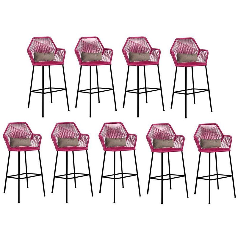 Kit 09 Banqueta Alta Com Encosto Sttar Balcão Ferro Preto Fibra Pink Almofada Sintético Bege - Ahazzo MóveisBANQUETA STTAR - Ahazzo MóveisIdeal para agregar elegância e sofisticação ao seu ambiente de forma prática e eficaz.CARACTERÍSTICAS:- Largura: 45 cm;- Altura: 106 cm;- Profundidade: 35 cm;- Altura do chão até o assento: 75 cm;- Produzido em Aço carbono e Material Sintético (fibra);- Recomendamos a utilização para ambientes internas e externos.OBSERVAÇÕES:- Não produtos abrasivos no momento da limpeza;- As imagens ambientadas são meramente ilustrativas e podem apresentar itens que não compõe o produto;- Objetos decorativos que aparecem na foto não acompanham o produto;- As cores do produto podem variar de acordo com o monitor, a iluminação do ambiente, ou sua percepção visual;- Confira as dimensões antes da compra e certifique-se de que o produto passará por elevadores, portas e corredores, já que nossa entrega não inclui a subida de lances de escada, ou o lançamento de produtos;- Ao receber seus produtos, verifique no ato do recebimento qualquer dano na embalagem. A transportadora pode esperar a conferência do produto;- Produto para residencial em ambiente interno, não devendo ficar exposto diretamente ao sol, calor e umidades excessivas.