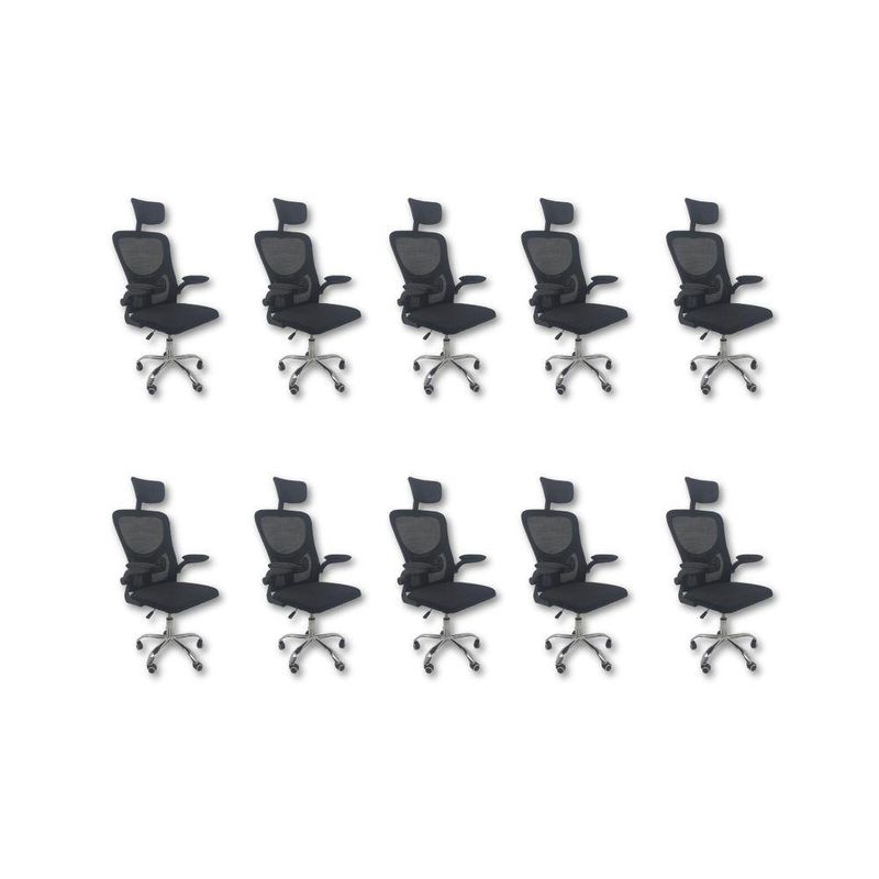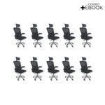 Kit 10 Cadeiras De Escritório Diretor Oficial Vegas Com Apoio PretoCadeira Diretor Vegas – Design, Conforto e Sofisticação para Seu EscritórioA Cadeira Diretor Vegas é a escolha ideal para quem busca elegância, conforto e funcionalidade no ambiente corporativo ou home office. Desenvolvida com design moderno e estrutura resistente, ela oferece suporte ergonômico completo, garantindo bem-estar e produtividade durante longas jornadas de trabalho.Com encosto alto em Tela Mesh respirável, a Vegas proporciona ventilação constante e conforto térmico. Seu sistema de regulagem permite ajustes personalizados, enquanto o acabamento em aço cromado adiciona um toque de sofisticação ao seu espaço de trabalho.Diferenciais do Produto:Design Executivo e Elegante: Combina estilo moderno com acabamento refinado.Encosto Ergonômico: Revestido em tela Mesh respirável, promove conforto e postura adequada.Apoio de Cabeça Ajustável: Suporte cervical para conforto prolongado.Apoio Lombar Integrado: Mantém a postura correta, reduzindo a fadiga.Apoio de Braços Retrátil com Elevação: Versatilidade e praticidade no uso diário.Ajuste de Altura com Pistão a Gás: Personalize a posição ideal de acordo com sua estatura.Base Giratória em Aço Cromado: Alta resistência, durabilidade e um visual sofisticado.Rodas de Nylon Silenciosas: Mobilidade suave e segura em diferentes superfícies.Mecanismo Pneumático de Ajuste: Permite regulagens precisas com facilidade.Extras: Acompanha e-book exclusivo.Especificações Técnicas:Modelo: VegasMarca: Oficial WebshopLinha: DiretorTipo de Cadeira: DiretorMaterial da Estrutura: Aço cromado e polipropileno reforçadoMaterial do Encosto: Tela Mesh respirávelMaterial do Assento: Espuma de alta densidade revestida em tecido poliésterPeso Máximo Suportado: 120 kgRecursos e Funcionalidades:Ergonômica: SimGiratória: SimAjuste de Altura: Sim (pistão a gás)Apoio de Cabeça: Sim (ajustável)Apoio Lombar: SimApoio de Braços: Sim (retrátil e com elevação)Encosto Reclinável: SimRodízios: Sim (nylon silencioso)Dimensões do Produto:Altura Total (mín./máx.): 94 cm a 126 cmAltura do Assento (mín./máx.): 41 cm a 50 cmAltura do Encosto: 60 cmAltura do Encosto de Cabeça: 17 cm (ajustável até 20 cm)Largura do Assento: 46 cmProfundidade do Assento: 48 cmLargura entre Braços: 42 cmLargura Total (braços externos): 68 cmDistância dos Pés: 65 cmCapacidade de Carga: Suporta até 120 kgCuidados e Manutenção:A limpeza pode ser realizada com pano úmido e detergente neutro. Evite produtos abrasivos para preservar o acabamento cromado e a tela Mesh, garantindo maior durabilidade da cadeira.Sofisticação e Conforto para Seu Escritório!Transforme seu ambiente com a Cadeira Diretor Vegas e desfrute de um design ergonômico, moderno e funcional. Ideal para quem busca um produto que alia conforto, praticidade e elegância no dia a dia de trabalho.