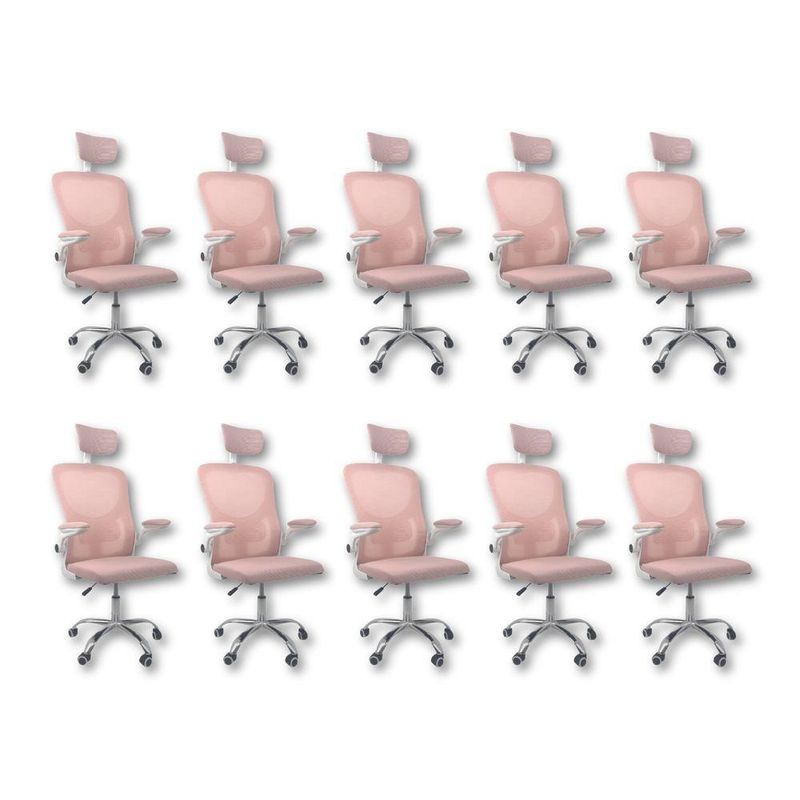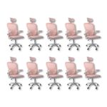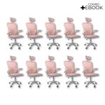 Kit 10 Cadeiras De Escritório Diretor Oficial Vegas Com Apoio Rosa E BrancoCadeira Diretor Vegas – Design, Conforto e Sofisticação para Seu EscritórioA Cadeira Diretor Vegas é a escolha ideal para quem busca elegância, conforto e funcionalidade no ambiente corporativo ou home office. Desenvolvida com design moderno e estrutura resistente, ela oferece suporte ergonômico completo, garantindo bem-estar e produtividade durante longas jornadas de trabalho.Com encosto alto em Tela Mesh respirável, a Vegas proporciona ventilação constante e conforto térmico. Seu sistema de regulagem permite ajustes personalizados, enquanto o acabamento em aço cromado adiciona um toque de sofisticação ao seu espaço de trabalho.Diferenciais do Produto:Design Executivo e Elegante: Combina estilo moderno com acabamento refinado.Encosto Ergonômico: Revestido em tela Mesh respirável, promove conforto e postura adequada.Apoio de Cabeça Ajustável: Suporte cervical para conforto prolongado.Apoio Lombar Integrado: Mantém a postura correta, reduzindo a fadiga.Apoio de Braços Retrátil com Elevação: Versatilidade e praticidade no uso diário.Ajuste de Altura com Pistão a Gás: Personalize a posição ideal de acordo com sua estatura.Base Giratória em Aço Cromado: Alta resistência, durabilidade e um visual sofisticado.Rodas de Nylon Silenciosas: Mobilidade suave e segura em diferentes superfícies.Mecanismo Pneumático de Ajuste: Permite regulagens precisas com facilidade.Extras: Acompanha e-book exclusivo.Especificações Técnicas:Modelo: VegasMarca: Oficial WebshopLinha: DiretorTipo de Cadeira: DiretorMaterial da Estrutura: Aço cromado e polipropileno reforçadoMaterial do Encosto: Tela Mesh respirávelMaterial do Assento: Espuma de alta densidade revestida em tecido poliésterPeso Máximo Suportado: 120 kgRecursos e Funcionalidades:Ergonômica: SimGiratória: SimAjuste de Altura: Sim (pistão a gás)Apoio de Cabeça: Sim (ajustável)Apoio Lombar: SimApoio de Braços: Sim (retrátil e com elevação)Encosto Reclinável: SimRodízios: Sim (nylon silencioso)Dimensões do Produto:Altura Total (mín./máx.): 94 cm a 126 cmAltura do Assento (mín./máx.): 41 cm a 50 cmAltura do Encosto: 60 cmAltura do Encosto de Cabeça: 17 cm (ajustável até 20 cm)Largura do Assento: 46 cmProfundidade do Assento: 48 cmLargura entre Braços: 42 cmLargura Total (braços externos): 68 cmDistância dos Pés: 65 cmCapacidade de Carga: Suporta até 120 kgCuidados e Manutenção:A limpeza pode ser realizada com pano úmido e detergente neutro. Evite produtos abrasivos para preservar o acabamento cromado e a tela Mesh, garantindo maior durabilidade da cadeira.Sofisticação e Conforto para Seu Escritório!Transforme seu ambiente com a Cadeira Diretor Vegas e desfrute de um design ergonômico, moderno e funcional. Ideal para quem busca um produto que alia conforto, praticidade e elegância no dia a dia de trabalho.