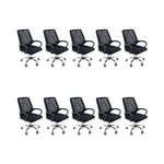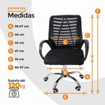 Kit 10 Cadeiras De Escritório Esteirinha Mesh Ergonômica Giratória PretoCadeira de Escritório Esteirinha Tela Mesh – Conforto, Leveza e Ergonomia para o Dia a DiaA Cadeira Esteirinha Tela Mesh foi desenvolvida para oferecer praticidade, ventilação e conforto para quem passa longas horas sentado. Com design leve, estrutura funcional e recursos essenciais de ergonomia, ela é ideal para escritórios, home office e ambientes de estudo que exigem mobilidade e bem-estar.Seu encosto em tela Mesh respirável garante excelente circulação de ar, reduzindo o acúmulo de calor durante o uso prolongado. O assento possui estrutura resistente em madeira multilaminada e revestimento confortável para tornar sua rotina mais agradável.Com ajuste de altura, sistema giratório e rodízios de movimentação suave, a Esteirinha oferece a versatilidade que o seu dia a dia precisa, ao mesmo tempo em que os apoios de braço fixos contribuem para uma postura mais estável e confortável.Disponível nas cores preta e branca, para combinar com diferentes estilos de ambiente.Conforto, Mobilidade e Ergonomia EssencialEncosto em tela Mesh respirável, proporcionando ventilação contínua.Assento com estrutura resistente e formato ergonômico para maior conforto ao longo do dia.Apoios de braço fixos que auxiliam na postura durante reuniões, atividades de escrita e uso de computador.Sistema giratório com rotação de 360º, oferecendo liberdade de movimento.Regulagem de altura que permite ajustar a postura ideal de acordo com sua mesa de trabalho.Rodízios resistentes e silenciosos, garantindo deslocamento suave no ambiente.Acompanha e-book exclusivo como material adicional.Medidas do ProdutoAlturaTotal: 89–97 cmAssento ao chão: 58–67 cmAltura do encosto: 51 cmAltura do braço: 23 cmLarguraBase 1 perna: 25 cmBase 2 pernas: 50 cmEncosto: 47 cmAssento: 46 cmDistância entre braços: 61 cmLargura do braço: 5 cmComprimentoEspessura do encosto: 2 cmAssento: 45,5 cmBraço: 32 cmInformações TécnicasPeso: 5 kgEstrutura: Nylon e aço cromadoRevestimento: Nylon e tela MeshBraços: PolipropilenoAssento: Madeira multilaminadaPeso máximo suportado: 120 kgCores disponíveis: Preto e BrancoLeveza, Funcionalidade e Conforto ao Seu AlcanceA Cadeira Esteirinha Tela Mesh é a escolha ideal para quem busca uma cadeira prática, arejada e confortável para uso diário.Combinando mobilidade, ergonomia e um design versátil, ela se adapta facilmente a diferentes ambientes — sempre entregando bem-estar e desempenho.