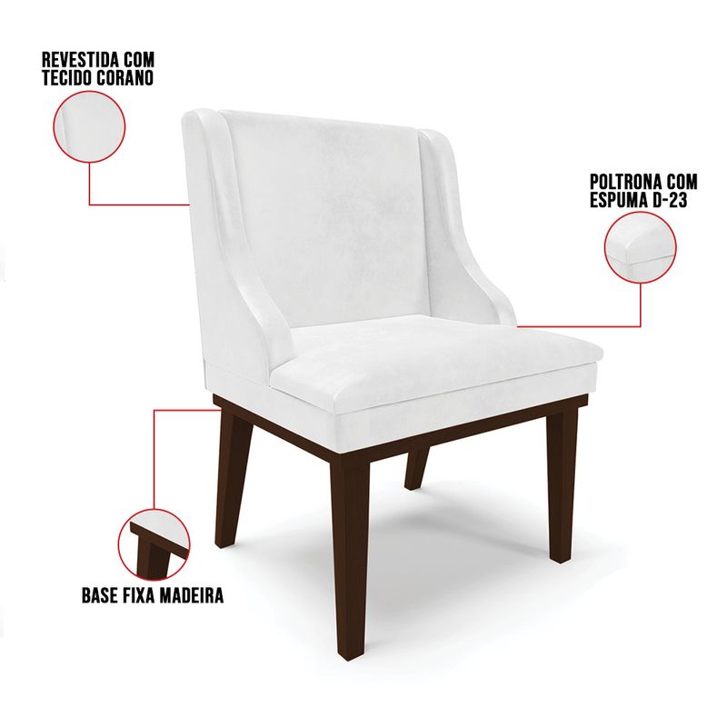 Experimente deixar sua decoração com bom gosto e qualidade com a cadeira de jantar Liz. É perfeita para você não abre mão de qualidade e requinte na hora das refeições e confraternizações com amigos e familiares. Produzida com Base Fixa Madeira Tabaco que suportam até 120 kg, estrutura ecologicamente correta de madeira de eucalipto e pinus, oferece durabilidade e qualidade ao móvel, seu estofamento é com espuma de densidade D-23, revestido em tecido Corano. Sofisticada e excelente para deixar sua sala de jantar mais aconchegante. Compre sem sair de casa! Dimensões Altura total: 87 cm Largura total: 55 cm Profundidade total: 55 cm Altura do encosto: 40 cm Largura do assento: 45 cm Profundidade do assento: 50 cm Altura do chão ao assento: 47 cm Espessura do assento: 10 cm Tamanho da base: 34 cm Peso: 14 kg Especificações do Produto Estrutura: Madeira Eucalipto Espuma: D-23 Tecido: Corano Tipo de pés: Base Fixa Madeira Tabaco Peso suportado: Até 120 Kg Garantia: 90 dias contra defeito de fabricação Montagem: O produto vai montado, apenas parafusar base Instruções de limpeza: Utilizar um pano limpo e levemente úmido Você irá receber: 05 Volumes com 10 Cadeiras Observações Relevantes - Todos os produtos vão embalados com total segurança; - As cores dos produtos podem sofrer alterações dependendo do seu monitor; - Para futuras compras, não garantimos a mesma tonalidade de cor, pois existe variação a cada lote do fabricante do tecido; - As imagens são meramente ilustrativas, não acompanham objetos de decoração e eletros; - Confira as dimensões do produto no momento da compra e certifique-se de que passará normalmente por escadas, elevadores, portas e corredores; - Importante: Por se tratar de estofado as medidas podem ter uma pequena variação em até 3 cm; - Não nos responsabilizamos no ato da entrega por montagens, desmontagens, instalações de produtos; - Não nos responsabilizamos no ato da entrega por subir escadas, elevadores, nem utilização de guinchos ou equipamentos similares para acesso a pisos superiores em apartamentos; - A entrega do produto é realizada em todo território nacional, até onde as rodovias alcançam, entregas fluviais ou aéreas devem ser cotadas a parte; - Observando as orientações acima, evita-se futuros desagrados ou imprevistos com a entrega do produto. Havendo despesas adicionais, serão de responsabilidade do cliente;