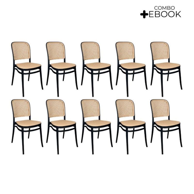 Kit 10 Cadeiras De Jantar Roma Para Sala E Cozinha Preto Cadeira de Jantar Roma para Sala e Cozinha PretoDesign e EstiloCom visual moderno e elegante, a Cadeira Roma traz um toque sofisticado à decoração. Seu encosto e assento apresentam leve inclinação ergonômica, garantindo conforto duradouro durante as refeições ou nas conversas à mesa.Material e DurabilidadeProduzida 100% em polipropileno de alta qualidade, a cadeira oferece excelente resistência e durabilidade. Com peso aproximado de 5?kg, suporta até 120?kg e contribui para um ambiente agradável e funcional.Conforto e PraticidadeO assento e encosto foram ergonomicamente projetados para oferecer suporte e conforto prolongado. A limpeza é simples e rápida: basta um pano úmido para manter a peça com aspecto impecável.Dimensões e Especificações Técnicas:Altura total: 85?cmLargura total: assento varia entre 34?cm a 41,5?cmProfundidade total: 42?cmComprimento: 42 cmGarantiaContempla 3 meses de garantia contra defeitos de fabricação, reforçando a segurança da sua compra. Destaques Característica: Benefício:Polipropileno Premium - Leveza, resistência e fácil manutençãoSuporta até 120?kg - Uso seguro e estabilidade para várias pessoasProjeto ergonômico - Conforto prolongado, ideal para refeições e lazerMedidas compactas - Facilmente encaixável em diferentes ambientesGarantia de fábrica - Assistência rápida e confiávelIdeal para: Salas de jantar, cozinhas gourmet, varandas, áreas de lazer ou ambientes de estar. Perfeita para quem busca design contemporâneo aliado à funcionalidadeAcompanha E-book!