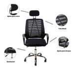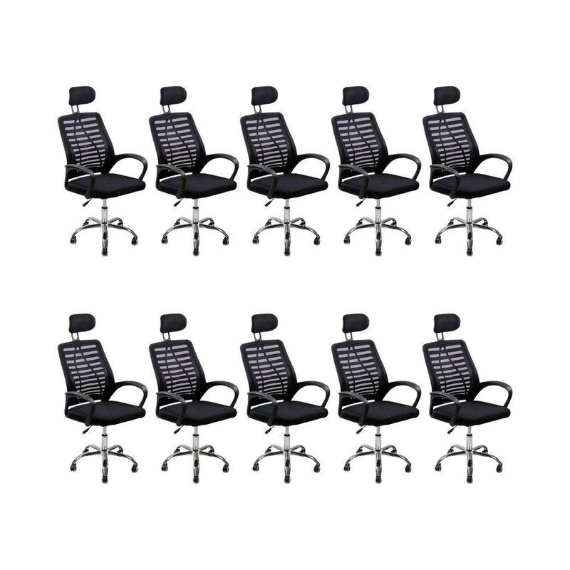 Kit 10 Cadeiras Escritório Diretor Tela Mesh Com Encosto De Cabeça PretoTudo de mais precioso para ser a peça perfeita em seu escritório!Se você é do tipo de pessoa que passa a maior parte de seu tempo em seu ambiente de trabalho, sabe que diferente do que muitos pensam, passar a maior parte do dia sentado pode não ser nada confortável!Por isso, esse modelo de cadeira tem tudo o que o seu escritório precisa!Com um sistema giratório e rodinhas fixadas de forma inteligente, você vai conseguir se mover pelo escritório de forma mais eficaz, ela também conta com apoiadores de braços almofadados, para que você possa ter muito mais conforto durante uma reunião muito longa, ou em sua rotina geral no escritório! Ela conta com um apoio para nuca. O apoio para a nuca é extremamente importante para manter a postura adequada durante a realização de várias atividades, especialmente aquelas que envolvem sentar por períodos prolongados. Além disso, o apoio para a nuca também pode ajudar a reduzir a fadiga muscular, permitindo que os músculos do pescoço e ombros relaxem enquanto a pessoa está sentada.