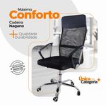 Kit 10 Cadeiras Escritório Nagano Oficial PretoCadeira de Escritório Nagano – Design, Ergonomia e Conforto para o Seu Dia a DiaDescubra o equilíbrio perfeito entre design moderno e conforto ergonômico com a Cadeira de Escritório Nagano.Projetada para proporcionar bem-estar durante longas jornadas, ela combina encosto alto em tela Mesh respirável, ajuste de altura, função giratória e acabamento sofisticado, tornando o ambiente de trabalho mais produtivo e elegante.Com estrutura robusta e formato ergonômico, a Nagano oferece apoio ideal para costas e ombros, garantindo postura correta e conforto prolongado.É a escolha certa para quem busca qualidade, estilo e funcionalidade em um só produto.A montagem é simples e rápida — acompanha manual de instruções e suporte de atendimento especializado para qualquer dúvida. Diferenciais do ProdutoErgonomia e Conforto: Encosto alto e apoio lombar que garantem postura correta.Tela Mesh Respirável: Mantém ventilação constante, ideal para uso prolongado.Ajuste de Altura e Função Giratória: Permite adaptar a cadeira à sua rotina com praticidade.Estrutura Robusta: Produzida em nylon e aço cromado para máxima durabilidade.Design Moderno: Linhas elegantes que valorizam qualquer ambiente corporativo ou home office.Fácil Montagem: Acompanha manual e suporte pós-venda especializado.Extras: acompanha e-book exclusivo. Especificações TécnicasModelo: NaganoMarca: Oficial WebshopTipo de Cadeira: Executiva / GiratóriaMaterial da Estrutura: Nylon e Aço CromadoRevestimento: Tela Mesh (Nylon)Assento: Madeira multilaminada com espuma de alta densidadeBraços: Polipropileno (PP) fixosPeso Máximo Suportado: 120 kgPeso da Cadeira: 8 kg Dimensões do ProdutoAltura Total (mín./máx.): 110 cm a 118 cmAltura do Braço ao Chão (mín./máx.): 63 cm a 68 cmAltura do Assento (mín./máx.): 40,5 cm a 49,5 cmAltura do Encosto: 68 cmLargura do Assento: 51 cmLargura do Encosto: 48,5 cmLargura entre Braços: 64 cmProfundidade do Assento: 52 cm Cuidados e ManutençãoA limpeza pode ser realizada com pano úmido e detergente neutro, preservando o brilho e a integridade dos materiais.Evite produtos abrasivos e exposição prolongada ao sol para garantir maior durabilidade. Conforto e Sofisticação para o Seu Escritório!A Cadeira de Escritório Nagano oferece o equilíbrio ideal entre ergonomia, resistência e estilo contemporâneo.Perfeita para home offices e ambientes corporativos, ela transforma sua rotina em uma experiência de trabalho mais produtiva e confortável.