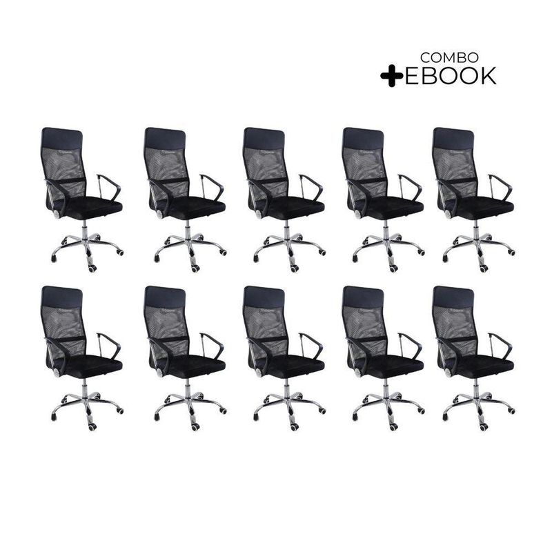 Kit 10 Cadeiras Escritório Nagano Oficial PretoCadeira de Escritório Nagano – Design, Ergonomia e Conforto para o Seu Dia a DiaDescubra o equilíbrio perfeito entre design moderno e conforto ergonômico com a Cadeira de Escritório Nagano.Projetada para proporcionar bem-estar durante longas jornadas, ela combina encosto alto em tela Mesh respirável, ajuste de altura, função giratória e acabamento sofisticado, tornando o ambiente de trabalho mais produtivo e elegante.Com estrutura robusta e formato ergonômico, a Nagano oferece apoio ideal para costas e ombros, garantindo postura correta e conforto prolongado.É a escolha certa para quem busca qualidade, estilo e funcionalidade em um só produto.A montagem é simples e rápida — acompanha manual de instruções e suporte de atendimento especializado para qualquer dúvida. Diferenciais do ProdutoErgonomia e Conforto: Encosto alto e apoio lombar que garantem postura correta.Tela Mesh Respirável: Mantém ventilação constante, ideal para uso prolongado.Ajuste de Altura e Função Giratória: Permite adaptar a cadeira à sua rotina com praticidade.Estrutura Robusta: Produzida em nylon e aço cromado para máxima durabilidade.Design Moderno: Linhas elegantes que valorizam qualquer ambiente corporativo ou home office.Fácil Montagem: Acompanha manual e suporte pós-venda especializado.Extras: acompanha e-book exclusivo. Especificações TécnicasModelo: NaganoMarca: Oficial WebshopTipo de Cadeira: Executiva / GiratóriaMaterial da Estrutura: Nylon e Aço CromadoRevestimento: Tela Mesh (Nylon)Assento: Madeira multilaminada com espuma de alta densidadeBraços: Polipropileno (PP) fixosPeso Máximo Suportado: 120 kgPeso da Cadeira: 8 kg Dimensões do ProdutoAltura Total (mín./máx.): 110 cm a 118 cmAltura do Braço ao Chão (mín./máx.): 63 cm a 68 cmAltura do Assento (mín./máx.): 40,5 cm a 49,5 cmAltura do Encosto: 68 cmLargura do Assento: 51 cmLargura do Encosto: 48,5 cmLargura entre Braços: 64 cmProfundidade do Assento: 52 cm Cuidados e ManutençãoA limpeza pode ser realizada com pano úmido e detergente neutro, preservando o brilho e a integridade dos materiais.Evite produtos abrasivos e exposição prolongada ao sol para garantir maior durabilidade. Conforto e Sofisticação para o Seu Escritório!A Cadeira de Escritório Nagano oferece o equilíbrio ideal entre ergonomia, resistência e estilo contemporâneo.Perfeita para home offices e ambientes corporativos, ela transforma sua rotina em uma experiência de trabalho mais produtiva e confortável.