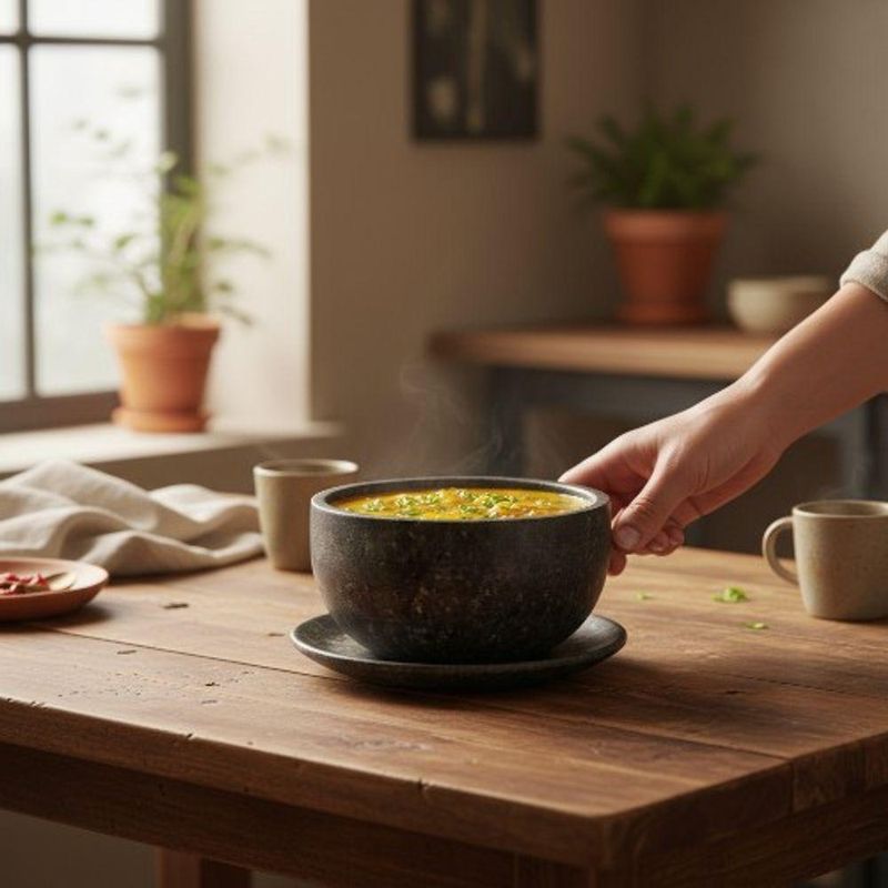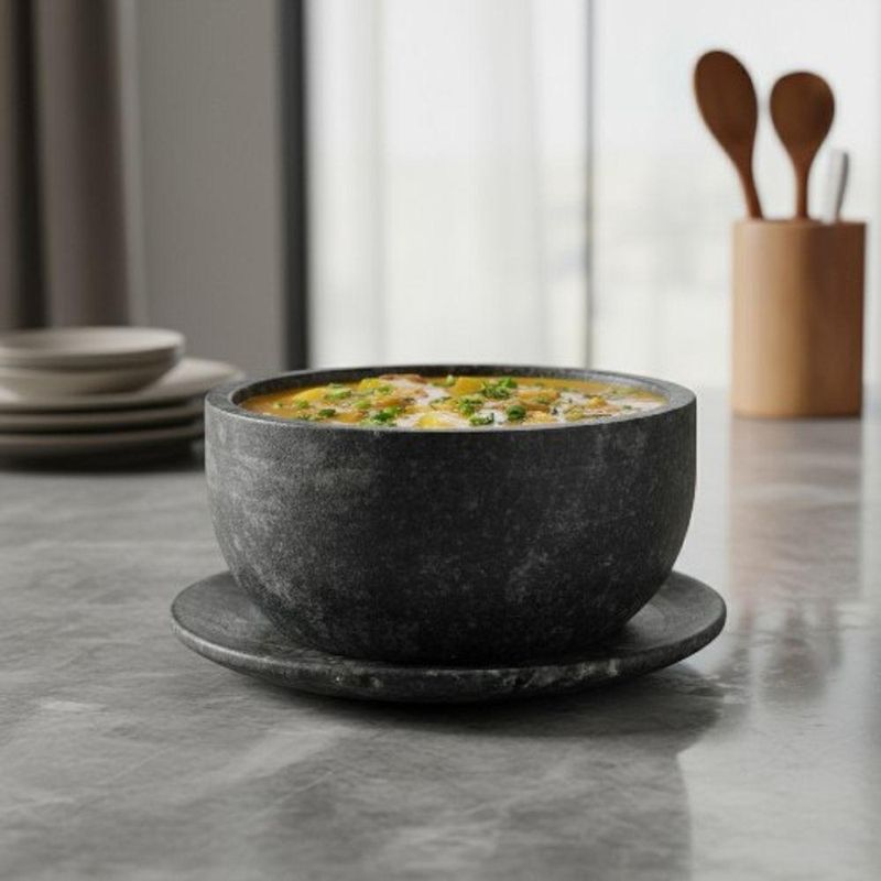 Kit 10 Cumbucas Bowl Pedra Sabão Com Prato 350 MlBowl com Prato em Pedra-Sabão – Artesanal e NaturalSirva com estilo e tradição!Este conjunto de bowl com prato em pedra-sabão une beleza rústica, resistência e funcionalidade — perfeito para servir molhos, petiscos, caldos, sobremesas ou pequenas porções de forma elegante e única.NESSE ANÚNCIO SÃO 10 (DEZ) CONJUNTOSCaracterísticas:- Material: Pedra-sabão 100% natural- Conjunto: 1 bowl + 1 prato de apoio- Acabamento: Polido e artesanal- Resistente ao calor — ideal para servir alimentos quentes ou frios- Fácil de limpar e super durável- Tonalidade: Cinza com veios naturais (variações únicas de cada peça)Medidas aproximadas:- Bowl: 350 ml- Prato: 15 cm de diâmetro x 1,5 de altur(Por se tratar de produto artesanal, pequenas variações podem ocorrer.)Produto artesanal feito em Minas GeraisCada peça é única — feita à mão por artesãos locais, preservando a tradição mineira da pedra-sabão.O que você achou?Caso tenha ficado alguma dúvida pode nos contatar, teremos o maior prazer em atender.Explore as nossas outras opções de produtos, temos certeza que encontrará outros produtos de seu interesse! :)Visite nossas páginas e nos siga nas redes sociais.Equipe A PANELA DE PEDRA
