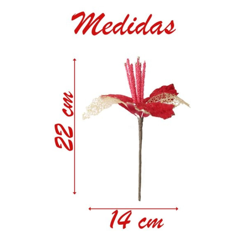 Kit 10 Flores Vermelhas Com Cabo Artificial Decoração De Natal Com Glitter 22cm - Decoração perfeita para a festa de natal! Adequado para guirlandas de natal, decorações de árvore de natal, adicionando uma atmosfera festiva. Características: Material: Plástico Tamanho: 22cm X 14cm Contém: 10 Unidades. Características Gerais do Produto: • Material: Poliéster Garantia: • Garantia do site - 1 Mês