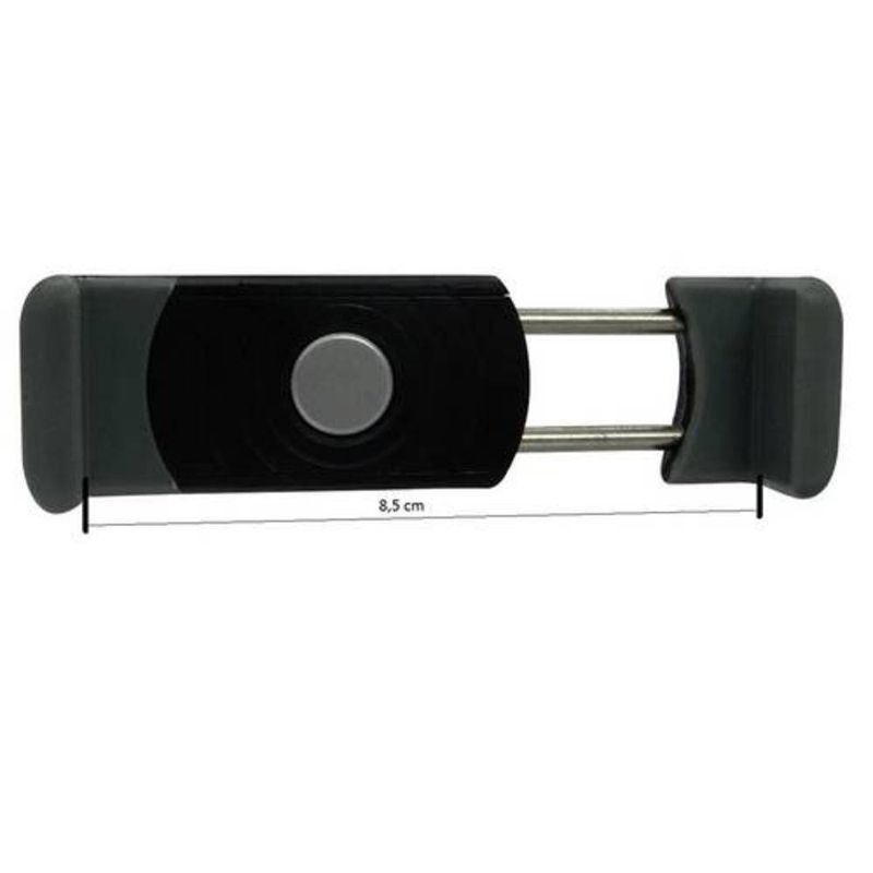 Suporte veicular universal para Smartphones preto ideal para utilização dos aplicativos de navegação, controle de músicas enquanto dirige e o controle das chamadas por viva-voz do seu smartphone.• Compatível com todos os modelos de smartphones até 8cm • de largura. • Presilha para fixação com segurança em qualquer tipo de saída de ar (posições: horizontal e vertical). • Design ultracompacto e leve. • Possibilita conexão de cabos de energia e áudio.