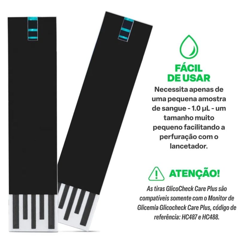 KIT COM 100 TIRAS DE GLICOSE GLICOCHEC CARE PLUS - HC489 - MULTI SAÚDE Apresentamos as Tiras De Glicemia Care Plus da linha Multi Saúde, um kit essencial para monitorar sua glicemia de forma prática e confiável. Composto por 100 unidades, essas tiras proporcionam medições precisas, permitindo que você tenha controle total mesmo em meio ao desafio do diabetes. Seu uso é simples e seguro, requerendo apenas uma pequena amostra de sangue. Compatíveis com os modelos HC487 e HC488 (NÃO INCLUSOS), essas tiras garantem resultados confiáveis para o seu medidor de glicose. Cuide de sua saúde com toda a comodidade e precisão que você merece, adquira agora as Tiras De Glicemia Care Plus da linha GlicoCheck, desenvolvida pela Multi Saúde! Viva bem e com plenitude, pois a sua saúde em primeiro lugar é a nossa prioridade. Aproveite essa oportunidade e garanta já as suas Tiras De Glicemia Care Plus! Monitore sua glicose regularmente e tenha uma vida saudável mesmo com diabetes. Não espere mais para cuidar de você, faça sua compra hoje mesmo e desfrute de mais qualidade de vida.