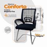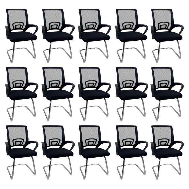 Kit 15 Cadeiras De Escritório Begônia Oficial FixaCadeira de Escritório Begonia Oficial Tela Mesh com Base Fixa – Conforto e Estilo para o Seu EspaçoA Cadeira de Escritório Begonia Oficial Tela Mesh com Base Fixa foi desenvolvida para quem busca elegância, praticidade e bem-estar no dia a dia.Com design moderno e estrutura robusta, é ideal para home office, escritórios corporativos e ambientes de estudo, proporcionando uma experiência de uso confortável e duradoura.Seu encosto em tela Mesh respirável garante ventilação contínua, evitando o acúmulo de calor, enquanto o assento estofado em espuma de alta densidade oferece o suporte ideal para longos períodos de trabalho.Os braços fixos ajudam a reduzir a tensão nos ombros e proporcionam estabilidade, combinando ergonomia e estilo em um só produto. Diferenciais do ProdutoDesign Moderno e Versátil: Combina facilmente com qualquer tipo de decoração, do ambiente corporativo ao residencial.Conforto Ergonômico: Encosto em tela Mesh e assento estofado que proporcionam comodidade durante o uso prolongado.Estrutura Reforçada: Base fixa em metal resistente, garantindo segurança e durabilidade.Apoio de Braços Fixos: Contribuem para uma postura correta e reduzem a fadiga nos ombros.Material de Alta Qualidade: Acabamento impecável e fácil de limpar, ideal para o dia a dia.Montagem Prática: Envio desmontado com manual de instruções e montagem simples.Extras: acompanha e-book exclusivo. Especificações TécnicasModelo: Begonia Marca: Oficial Webshop Linha: Escritório / Home OfficeTipo de Cadeira: FixaMaterial do Assento: Espuma de alta densidade revestida em tecidoMaterial do Encosto: Tela Mesh respirávelMaterial da Estrutura: Metal resistenteApoio de Braços: FixosCapacidade de Peso: Suporta até 120 kg Dimensões do ProdutoAltura Total: 85 cmAltura do Encosto: 45,5 cmAltura do Assento (do chão): 43 cmLargura do Assento: 48,5 cmProfundidade do Assento: 48,5 cmLargura entre Braços: 54 cm Cuidados e ManutençãoPara conservar sua cadeira sempre impecável, realize a limpeza com um pano úmido e detergente neutro.Evite o uso de produtos abrasivos, garantindo a preservação do acabamento metálico e a durabilidade da tela Mesh. Conforto e Estilo para o Seu Ambiente!A Cadeira de Escritório Begonia Oficial Tela Mesh com Base Fixa é a escolha ideal para quem busca design contemporâneo, ergonomia e resistência em um único produto.Transforme seu espaço de trabalho ou estudo com sofisticação, conforto e qualidade superior.