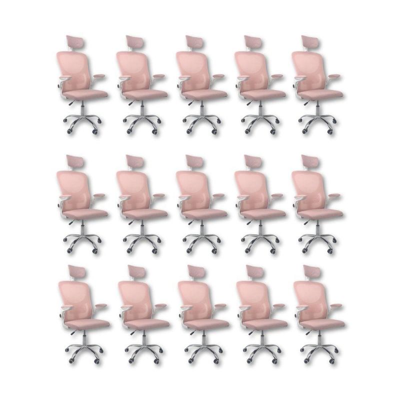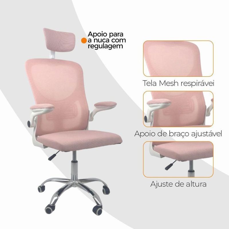 Kit 15 Cadeiras De Escritório Diretor Oficial Vegas Com Apoio Rosa E BrancoCadeira Diretor Vegas – Design, Conforto e Sofisticação para Seu EscritórioA Cadeira Diretor Vegas é a escolha ideal para quem busca elegância, conforto e funcionalidade no ambiente corporativo ou home office. Desenvolvida com design moderno e estrutura resistente, ela oferece suporte ergonômico completo, garantindo bem-estar e produtividade durante longas jornadas de trabalho.Com encosto alto em Tela Mesh respirável, a Vegas proporciona ventilação constante e conforto térmico. Seu sistema de regulagem permite ajustes personalizados, enquanto o acabamento em aço cromado adiciona um toque de sofisticação ao seu espaço de trabalho.Diferenciais do Produto:Design Executivo e Elegante: Combina estilo moderno com acabamento refinado.Encosto Ergonômico: Revestido em tela Mesh respirável, promove conforto e postura adequada.Apoio de Cabeça Ajustável: Suporte cervical para conforto prolongado.Apoio Lombar Integrado: Mantém a postura correta, reduzindo a fadiga.Apoio de Braços Retrátil com Elevação: Versatilidade e praticidade no uso diário.Ajuste de Altura com Pistão a Gás: Personalize a posição ideal de acordo com sua estatura.Base Giratória em Aço Cromado: Alta resistência, durabilidade e um visual sofisticado.Rodas de Nylon Silenciosas: Mobilidade suave e segura em diferentes superfícies.Mecanismo Pneumático de Ajuste: Permite regulagens precisas com facilidade.Extras: Acompanha e-book exclusivo.Especificações Técnicas:Modelo: VegasMarca: Oficial WebshopLinha: DiretorTipo de Cadeira: DiretorMaterial da Estrutura: Aço cromado e polipropileno reforçadoMaterial do Encosto: Tela Mesh respirávelMaterial do Assento: Espuma de alta densidade revestida em tecido poliésterPeso Máximo Suportado: 120 kgRecursos e Funcionalidades:Ergonômica: SimGiratória: SimAjuste de Altura: Sim (pistão a gás)Apoio de Cabeça: Sim (ajustável)Apoio Lombar: SimApoio de Braços: Sim (retrátil e com elevação)Encosto Reclinável: SimRodízios: Sim (nylon silencioso)Dimensões do Produto:Altura Total (mín./máx.): 94 cm a 126 cmAltura do Assento (mín./máx.): 41 cm a 50 cmAltura do Encosto: 60 cmAltura do Encosto de Cabeça: 17 cm (ajustável até 20 cm)Largura do Assento: 46 cmProfundidade do Assento: 48 cmLargura entre Braços: 42 cmLargura Total (braços externos): 68 cmDistância dos Pés: 65 cmCapacidade de Carga: Suporta até 120 kgCuidados e Manutenção:A limpeza pode ser realizada com pano úmido e detergente neutro. Evite produtos abrasivos para preservar o acabamento cromado e a tela Mesh, garantindo maior durabilidade da cadeira.Sofisticação e Conforto para Seu Escritório!Transforme seu ambiente com a Cadeira Diretor Vegas e desfrute de um design ergonômico, moderno e funcional. Ideal para quem busca um produto que alia conforto, praticidade e elegância no dia a dia de trabalho.