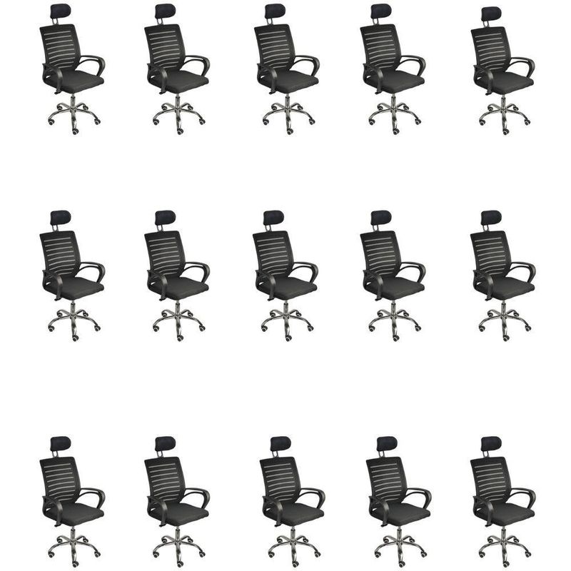 Kit 15 Cadeiras De Escritório Oficial Secretária Roma ApoioCadeira de Escritório Secretaria Diretor Roma – Ergonomia, Conforto e Mobilidade para o Seu Dia a DiaA Cadeira Secretaria Diretor Roma foi desenvolvida para oferecer conforto, funcionalidade e design moderno em qualquer ambiente. Ideal para escritório, home office ou estudo, ela garante bem-estar durante longas horas de uso, prevenindo desconfortos e promovendo uma postura correta.Com encosto em tela Mesh respirável, estrutura reforçada e base cromada, a Roma une leveza, resistência e elegância. Seu ajuste de altura permite personalizar a posição ideal em relação à mesa, tornando a rotina mais ergonômica e produtiva.Os apoios de braço proporcionam sustentação aos ombros e antebraços, favorecendo uma postura natural e confortável, enquanto as rodas e o sistema giratório de 360º oferecem liberdade total de movimento sem esforço. Diferenciais do ProdutoErgonomia e Conforto: Proporciona apoio ideal à coluna e aos braços, reduzindo a fadiga.Tela Mesh Respirável: Mantém o frescor e o conforto térmico durante o uso prolongado.Ajuste de Altura: Adapta-se perfeitamente à altura da mesa e às suas preferências pessoais.Função Giratória e Rodízios: Mobilidade suave e prática em qualquer ambiente.Design Moderno: Visual elegante que combina com escritórios e home offices.Montagem Simples: Acompanha manual de instruções e suporte pós-venda especializado.Extras: acompanha e-book exclusivo. Especificações TécnicasModelo: RomaMarca: Oficial WebshopTipo de Cadeira: Secretaria / DiretorMaterial da Estrutura: Nylon e Aço CromadoRevestimento: Tela Mesh (Nylon)Assento: Madeira multilaminada com espuma de alta densidadeBraços: Polipropileno (PP) fixosPeso Máximo Suportado: 120 kgPeso da Cadeira: 5,5 kg Dimensões do ProdutoAltura Total: 85 cmAltura do Encosto: 45,5 cmAltura do Assento (do chão): 43 cmLargura do Assento: 48,5 cmProfundidade do Assento: 48,5 cmLargura entre Braços: 54 cm Cuidados e ManutençãoA limpeza pode ser feita com pano úmido e detergente neutro.Evite produtos abrasivos e exposição prolongada ao sol para preservar o brilho e a integridade dos materiais.Conforto, praticidade e elegância em um só produto!A Cadeira Secretaria Diretor Roma é a escolha ideal para quem busca ergonomia, mobilidade e um toque sofisticado no ambiente de trabalho ou estudo.