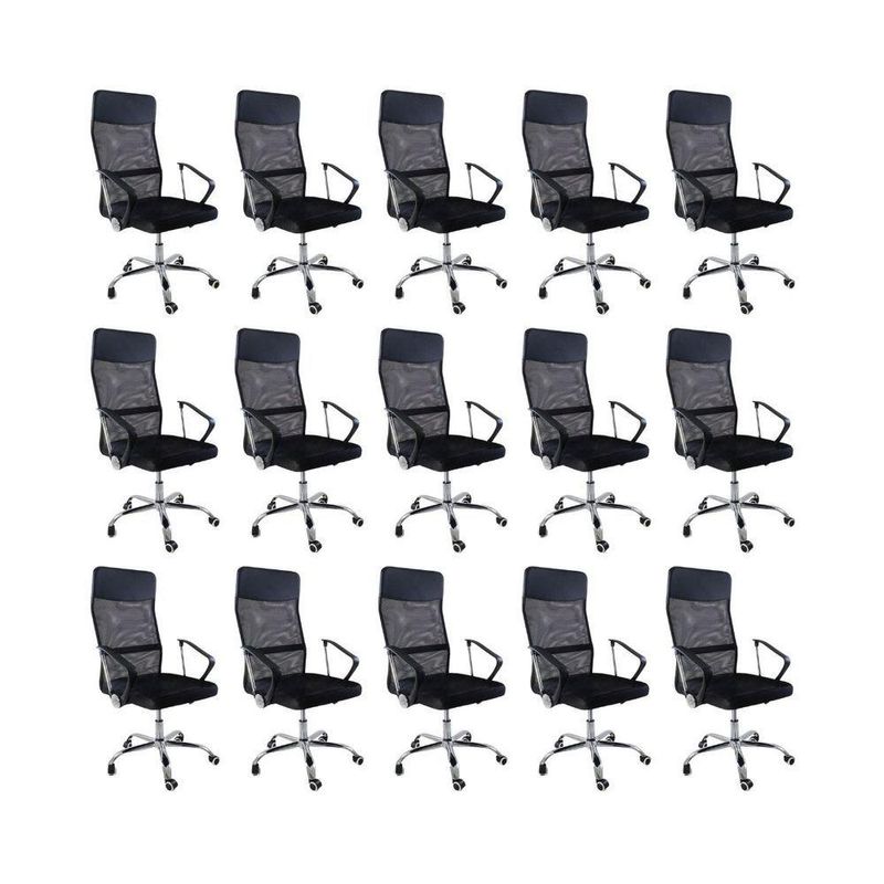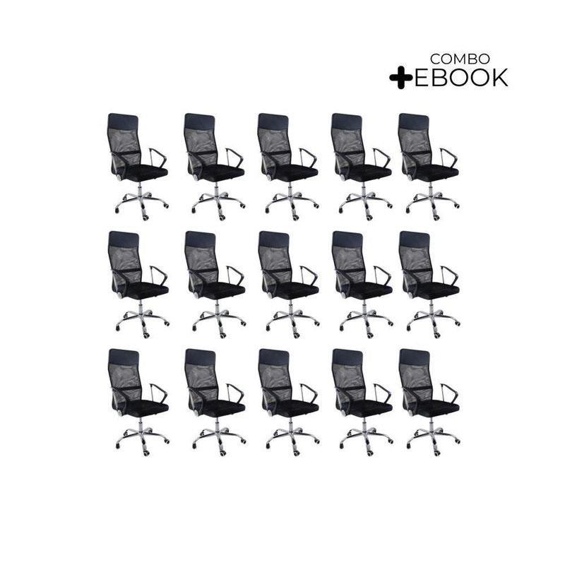 Kit 15 Cadeiras Escritório Nagano Oficial PretoCadeira de Escritório Nagano – Design, Ergonomia e Conforto para o Seu Dia a DiaDescubra o equilíbrio perfeito entre design moderno e conforto ergonômico com a Cadeira de Escritório Nagano.Projetada para proporcionar bem-estar durante longas jornadas, ela combina encosto alto em tela Mesh respirável, ajuste de altura, função giratória e acabamento sofisticado, tornando o ambiente de trabalho mais produtivo e elegante.Com estrutura robusta e formato ergonômico, a Nagano oferece apoio ideal para costas e ombros, garantindo postura correta e conforto prolongado.É a escolha certa para quem busca qualidade, estilo e funcionalidade em um só produto.A montagem é simples e rápida — acompanha manual de instruções e suporte de atendimento especializado para qualquer dúvida. Diferenciais do ProdutoErgonomia e Conforto: Encosto alto e apoio lombar que garantem postura correta.Tela Mesh Respirável: Mantém ventilação constante, ideal para uso prolongado.Ajuste de Altura e Função Giratória: Permite adaptar a cadeira à sua rotina com praticidade.Estrutura Robusta: Produzida em nylon e aço cromado para máxima durabilidade.Design Moderno: Linhas elegantes que valorizam qualquer ambiente corporativo ou home office.Fácil Montagem: Acompanha manual e suporte pós-venda especializado.Extras: acompanha e-book exclusivo. Especificações TécnicasModelo: NaganoMarca: Oficial WebshopTipo de Cadeira: Executiva / GiratóriaMaterial da Estrutura: Nylon e Aço CromadoRevestimento: Tela Mesh (Nylon)Assento: Madeira multilaminada com espuma de alta densidadeBraços: Polipropileno (PP) fixosPeso Máximo Suportado: 120 kgPeso da Cadeira: 8 kg Dimensões do ProdutoAltura Total (mín./máx.): 110 cm a 118 cmAltura do Braço ao Chão (mín./máx.): 63 cm a 68 cmAltura do Assento (mín./máx.): 40,5 cm a 49,5 cmAltura do Encosto: 68 cmLargura do Assento: 51 cmLargura do Encosto: 48,5 cmLargura entre Braços: 64 cmProfundidade do Assento: 52 cm Cuidados e ManutençãoA limpeza pode ser realizada com pano úmido e detergente neutro, preservando o brilho e a integridade dos materiais.Evite produtos abrasivos e exposição prolongada ao sol para garantir maior durabilidade. Conforto e Sofisticação para o Seu Escritório!A Cadeira de Escritório Nagano oferece o equilíbrio ideal entre ergonomia, resistência e estilo contemporâneo.Perfeita para home offices e ambientes corporativos, ela transforma sua rotina em uma experiência de trabalho mais produtiva e confortável.