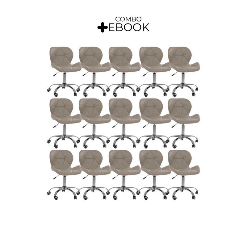 Kit 15 Cadeiras Office Eiffel Slim Oficial Giratória BegeCadeira Office Eiffel Slim Base Giratória – Design, Versatilidade e Conforto para o Seu EspaçoDescubra o equilíbrio ideal entre modernidade, ergonomia e sofisticação com a Cadeira Office Eiffel Slim Base Giratória.Projetada para proporcionar conforto e estilo, ela se adapta facilmente a qualquer ambiente— seja escritório, home office, sala de jantar ou espaço comercial — oferecendo funcionalidade e elegância em cada detalhe.Com assento anatômico revestido em couro sintético e estrutura em polipropileno de alta resistência, a Eiffel Slim alia durabilidade e design contemporâneo. Sua base cromada com rodízios e ajuste de altura garante mobilidade suave e personalização de uso, tornando suas horas de trabalho ou estudo muito mais agradáveis.A montagem é prática e acompanha manual de instruções e suporte de atendimento especializado para qualquer dúvida. Diferenciais do ProdutoDesign Sofisticado: Visual moderno que combina com qualquer ambiente residencial ou corporativo.Estrutura Robusta: Produzida em polipropileno e aço cromado para maior resistência e durabilidade.Ajuste de Altura: Permite personalizar a posição ideal para o seu conforto e ergonomia.Base Giratória com Rodízios: Facilita a movimentação e proporciona praticidade no dia a dia.Revestimento Premium: Couro sintético de toque macio e acabamento refinado.Montagem Simples: Acompanha manual e suporte pós-venda especializado.Extras: acompanha e-book exclusivo. Especificações TécnicasModelo: Eiffel SlimMarca: Oficial WebshopTipo de Cadeira: Office / GiratóriaMaterial da Estrutura: Polipropileno e Aço CromadoRevestimento: Couro Sintético (PU)Assento: Madeira multilaminada revestidaBase: Giratória cromada com rodíziosPeso Máximo Suportado: 120 kgPeso da Cadeira: 6 kg Dimensões do ProdutoAltura Total (mín./máx.): 72 cm a 85,5 cmAltura do Assento (mín./máx.): 43 cm a 56,5 cmAltura do Encosto: 42 cmLargura do Assento: 48 cmProfundidade do Assento: 36,5 cmLargura Total (base): 47,5 cm Cuidados e ManutençãoLimpe com pano úmido e detergente neutro, evitando produtos abrasivos que possam danificar o revestimento.Evite exposição direta ao sol para preservar a cor e o brilho do couro sintético e da base cromada. Conforto e Estilo para o Seu Dia a Dia!A Cadeira Office Eiffel Slim Base Giratória é a combinação perfeita entre design contemporâneo e praticidade.Ideal para quem valoriza ambientes elegantes e funcionais, ela oferece conforto, resistência e versatilidade para qualquer espaço.