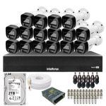 Kit 16 Câmeras Intelbras 1120b Full Color, Dvr 16ch Mhdx 1016c Hd 2tbItens inclusos:01 Dvr intelbras Mhdx 1016-c01 Hd 2tb instalado16 Câmeras Intelbras 1120b full color 01 Fonte 12v 15A01 Cabo Coaxial Flexível 4mm 80% de Malha 100m16 Conectores p432 Conectores bnc Dvr Intelbras Mhdx 1016-c 4x1 de 16 Canais Gravador de vídeo da série 1000 com 16 canais O MHDX 1016-C possui recursos como Detecção Inteligente de Movimento, compressão de vídeo H.265+ e criptografia de áudio e vídeo.Gabinete compactoO MHDX 1016-C possui case reduzido e melhor custo-benefício, mantendo as principais funções dos modelos de tamanho tradicional e toda a qualidade da marca Intelbras. Dvr Gravador Digital de Vídeo 1016-c- Mhdx 1016-c : Compatíveis Com 4 Tecnologias: Hdcvi+ Ahd + Hdtvi + Ip- Mhdx 1016-c: Compatível Com 5 Tecnologias: Hdcvi + Ahd + Hdtvi+ Analógica + Ip- Saídas de Vídeo Vga e Hdmi- Suporta 1 Hd Sata- Compressão de Vídeo H.265 e H.265+- Analíticos de Vídeo: Detecção Inteligente de Pessoas e Veículos- Compatibilidade Com Protocolo Onvif- Visualização Em 1080p- Modo Nvr – Transforma Todos os Canais Bnc Em Ip- Compatíveis Com Redes Wi-fi Através de Adaptador Usb- Edição de Áudio e Vídeo- Entradas de vídeo 16 canais BNC + 2 canais IP ou 18 canais IP no modo NVR- Saída de vídeo (monitores) 1 HDMI e 1 VGA Câmera intelbras 1120 B full colorMarca intelbras Pixels efetivos 1080 (H) × 720 (V)Linhas horizontais 1080HResolução Real HD: 720pLente 2.8 mmÂngulo de visão horizontal 112°Ângulo de visão vertical 62°Alcance LED 20mLed inteligente SimQuantidade de LEDs 2Formato do vídeo NTSCProtocolos de vídeo HDCVI / AHD-M / HDTVI (v2.0) Analógico (CVBSMudança de Protocolo Menu OSD / VHD Control*Relação sinal-ruído >65 dBSensibilidade Ɔ.005 lux / F1.6 (Color) 0 lux (Iluminator on)Velocidade do obturador 1/30 a 1/100000sSincronismo InternoÍris EletrônicaDay & Night Automático (Ajustável), Colorido