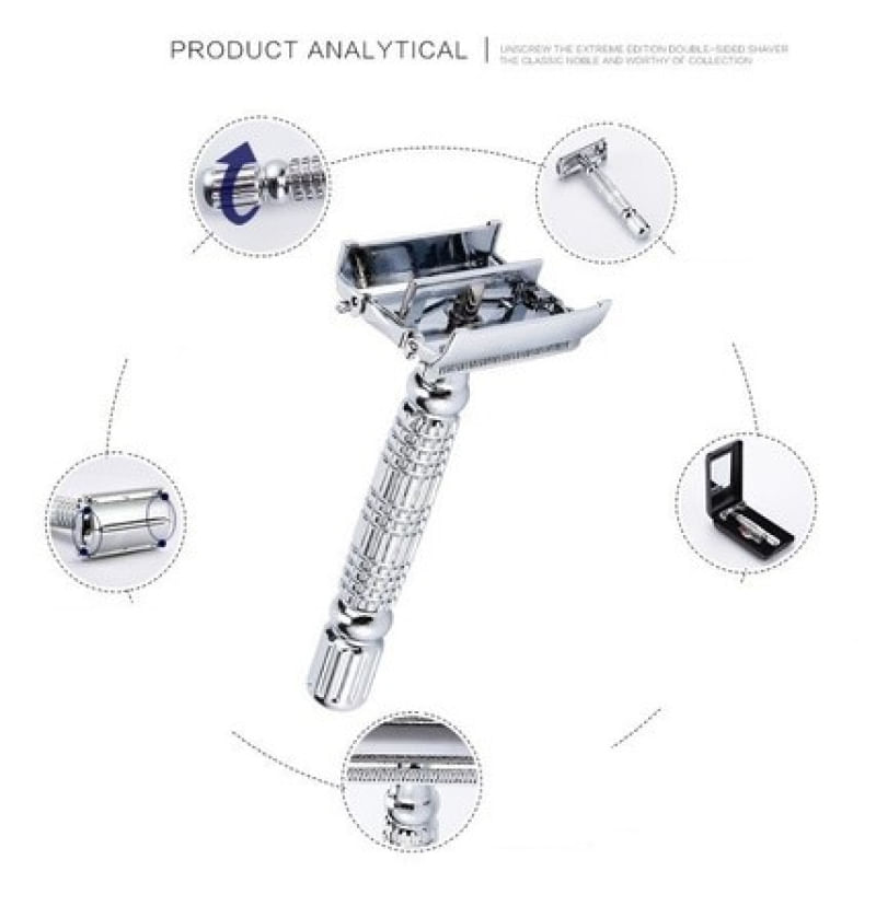 Kit 1x aparelho barbear borboleta + 10x lâminas + 1x pincel ==Conteúdo da embalagemKit com 1 unidade do aparelho de barbear clássico borboleta + 10 unidades de lâmina de corte + 1 unidade de pincel para barba ==Aparelho de barbear clássico retro vintage metal cromado com abertura tipo borboleta para colocar a lâmina gilete ==Esse aparelho clássico e raro é um presente maravilhoso para os homens.==O compartimento da lâmina abre e fecha girando um parafuso no cabo.==Características:Material resistente da liga de zinco da parte alta superior.E com um brilhante cromo galvanizado chapeamento que fornece um olhar nobre e elegante.Navalha tradicional oferece velha escola e sensação retro.Design de cabeça aberta borboleta, facilmente e seguro para mudar lâminas.O sistema de microcomb fornece segurança extra do que os projetos antigos durante o barbear.==Como usar:Lave com água morna e mantenha o rosto molhadoAplique uma espuma de barbear de alta qualidadeAo raspar, limpe a navalha com freqência para remover o restolhoE mantenha a navalha seca quando não estiver usando==Como mudar as lâminas:Segure a cabeça de corte pelos lados com uma mão enquanto se desenrosca da alça.Uma vez que o manípulo foi removido, levante a placa inferior apertando os cantos para evitar as bordas da lâmina.Incline os dedos permitindo que a lâmina usada caia e solte uma nova lâmina no topo da cabeça de corte.Coloque a nova lâmina e aperte a alça para montar de forma segura a navalha novamente .==Manter o produto fora do alcance de crianças e adolescentes.==Disponibilidade imediata==Produto novo==Imagem ilustrativa / demonstração==Garantia 90 dias==Fabricante Js technology / broadcom technology====Em caso de dúvidas, antes de comprar, favor entrar em contato no campo de perguntas e respostas==Todos os nossos produtos são fornecidos com garantia legal e nota fiscal==