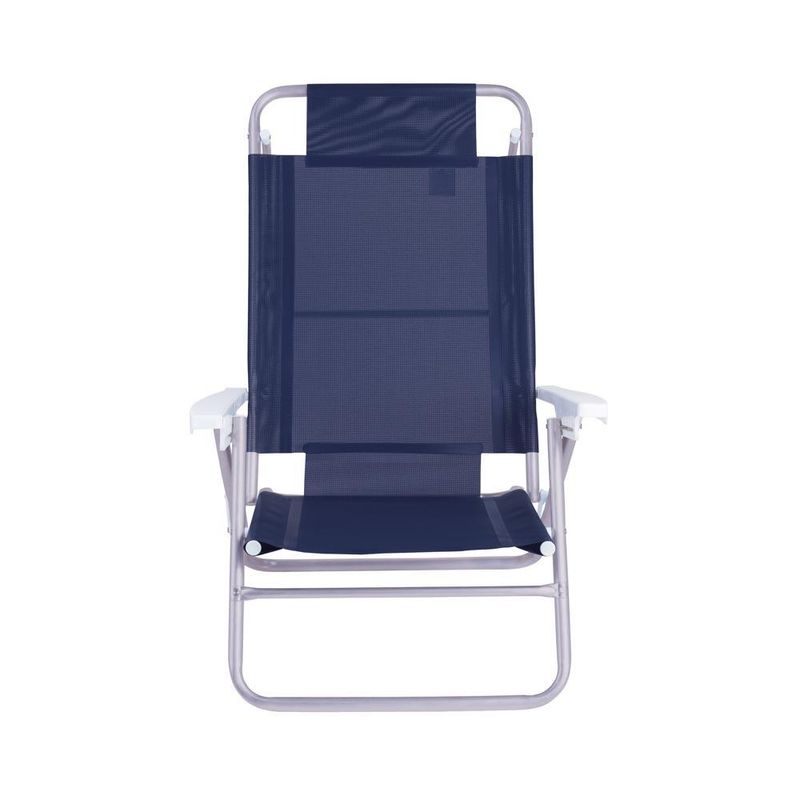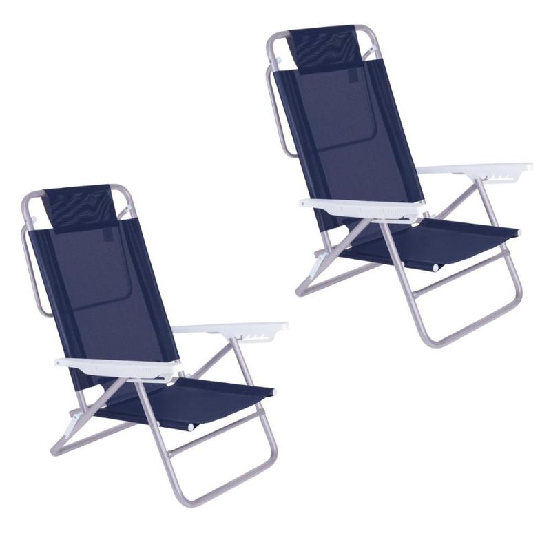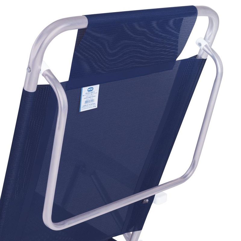 Kit 2 Cadeira Alumínio Reclinável 6 Posições Praia Mor Azul Praticidade em qualquer lugar! Além de seu design arrojado, a Cadeira Summer é bonita, confortável e anatômica. Com ela você vai curtir todos os prazeres do sol, pois os tubos foram projetados de forma a não pressionar as articulações. Fabricada pela Mor, conta com estrutura em tubo de alumínio de excelente qualidade, braços em polipropileno e tela 100 % poliéster com revestimento em PVC. Leve e durável graças à sua estrutura de alumínio, suporta até 120 Kg e foi pensada para ambientes externos e áreas litorâneas, já que não enferruja.A Summer possui seis diferentes configurações de ajustes de altura, apoio para braços e encosto alto, além de estrutura que serve de apoio quando utilizada na posição horizontal. É compacta e pode ser fechada quando for guardá-la, ocupando pouco espaço. De agora em diante ela o acompanhará por todos os passeios e viagens! Descrição do produtoMaterial: AlumínioCapacidade: 120 kgAltura: 85,5 cmLargura: 62 cmComprimento: 74,5 cmPeso 2,40 kg Imagens meramente ilustrativas, todos os itens que ambientam o produto não estão inclusos.