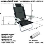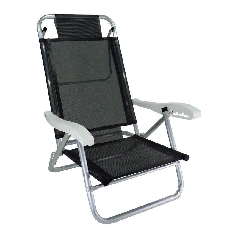 Kit 02 Cadeira de Praia Alumínio 5 Posições Banho de Sol Zaka A Cadeira Banho de Sol Alumínio Zaka foi desenvolvida para proporcionar mais conforto nos seus momentos de lazer, é uma cadeira tradicional com 5 posições diferentes, possui estrutura e dobradiças em alumínio, garantindo maior durabilidade. É indicada para pessoas com até 120kg. Fabricada em alumínio de alta resistência e que não enferruja, tecido BMDNET, soldado eletronicamente, sem costuras. Braços injetados com 5 posições. Atende público exigente, com alto padrão de qualidade. Além disso, é ótima para tomar sol tanto na praia como piscina, proporcionando ótimos momentos de lazer. Descrição do produtoMarca: ZakaMaterial: AlumínioPosições: 5Capacidade: 120 KGMedidas cadeira aberta (cm): 71 x 62 x 86 (C x L x A)Dimensões da embalagem (cm): 66 x 13 x 92,5 (C x L x A)Altura do chão até o assento: 19 cmAltura do assento até o encosto: 67 cmLargura útil: 45,5 cmPeso do produto: 2,562 kg Imagens meramente ilustrativas, todos os itens que ambientam o produto não estão inclusos.