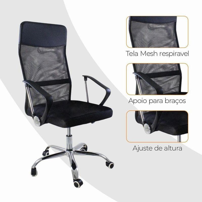 Kit 2 Cadeiras De Escritório Nagano Oficial Giratória PretoCadeira de Escritório Nagano – Design, Ergonomia e Conforto para o Seu Dia a DiaDescubra o equilíbrio perfeito entre design moderno e conforto ergonômico com a Cadeira de Escritório Nagano.Projetada para proporcionar bem-estar durante longas jornadas, ela combina encosto alto em tela Mesh respirável, ajuste de altura, função giratória e acabamento sofisticado, tornando o ambiente de trabalho mais produtivo e elegante.Com estrutura robusta e formato ergonômico, a Nagano oferece apoio ideal para costas e ombros, garantindo postura correta e conforto prolongado.É a escolha certa para quem busca qualidade, estilo e funcionalidade em um só produto.A montagem é simples e rápida — acompanha manual de instruções e suporte de atendimento especializado para qualquer dúvida.Diferenciais do ProdutoErgonomia e Conforto: Encosto alto e apoio lombar que garantem postura correta.Tela Mesh Respirável: Mantém ventilação constante, ideal para uso prolongado.Ajuste de Altura e Função Giratória: Permite adaptar a cadeira à sua rotina com praticidade.Estrutura Robusta: Produzida em nylon e aço cromado para máxima durabilidade.Design Moderno: Linhas elegantes que valorizam qualquer ambiente corporativo ou home office.Fácil Montagem: Acompanha manual e suporte pós-venda especializado.Extras: acompanha e-book exclusivo.Especificações TécnicasModelo: NaganoMarca: Oficial WebshopTipo de Cadeira: Executiva / GiratóriaMaterial da Estrutura: Nylon e Aço CromadoRevestimento: Tela Mesh (Nylon)Assento: Madeira multilaminada com espuma de alta densidadeBraços: Polipropileno (PP) fixosPeso Máximo Suportado: 120 kgPeso da Cadeira: 8 kgDimensões do ProdutoAltura Total (mín./máx.): 110 cm a 118 cmAltura do Braço ao Chão (mín./máx.): 63 cm a 68 cmAltura do Assento (mín./máx.): 40,5 cm a 49,5 cmAltura do Encosto: 68 cmLargura do Assento: 51 cmLargura do Encosto: 48,5 cmLargura entre Braços: 64 cmProfundidade do Assento: 52 cmCuidados e ManutençãoA limpeza pode ser realizada com pano úmido e detergente neutro, preservando o brilho e a integridade dos materiais.Evite produtos abrasivos e exposição prolongada ao sol para garantir maior durabilidade.Conforto e Sofisticação para o Seu Escritório!A Cadeira de Escritório Nagano oferece o equilíbrio ideal entre ergonomia, resistência e estilo contemporâneo.Perfeita para home offices e ambientes corporativos, ela transforma sua rotina em uma experiência de trabalho mais produtiva e confortável.