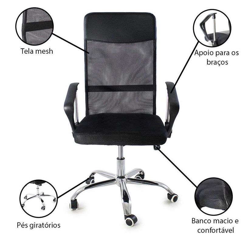 Kit 2 Cadeiras De Escritorio Nagano Oficial PretoCadeira de Escritório Nagano – Design, Ergonomia e Conforto para o Seu Dia a DiaDescubra o equilíbrio perfeito entre design moderno e conforto ergonômico com a Cadeira de Escritório Nagano.Projetada para proporcionar bem-estar durante longas jornadas, ela combina encosto alto em tela Mesh respirável, ajuste de altura, função giratória e acabamento sofisticado, tornando o ambiente de trabalho mais produtivo e elegante.Com estrutura robusta e formato ergonômico, a Nagano oferece apoio ideal para costas e ombros, garantindo postura correta e conforto prolongado.É a escolha certa para quem busca qualidade, estilo e funcionalidade em um só produto.A montagem é simples e rápida — acompanha manual de instruções e suporte de atendimento especializado para qualquer dúvida. Diferenciais do ProdutoErgonomia e Conforto: Encosto alto e apoio lombar que garantem postura correta.Tela Mesh Respirável: Mantém ventilação constante, ideal para uso prolongado.Ajuste de Altura e Função Giratória: Permite adaptar a cadeira à sua rotina com praticidade.Estrutura Robusta: Produzida em nylon e aço cromado para máxima durabilidade.Design Moderno: Linhas elegantes que valorizam qualquer ambiente corporativo ou home office.Fácil Montagem: Acompanha manual e suporte pós-venda especializado.Extras: acompanha e-book exclusivo. Especificações TécnicasModelo: NaganoMarca: Oficial WebshopTipo de Cadeira: Executiva / GiratóriaMaterial da Estrutura: Nylon e Aço CromadoRevestimento: Tela Mesh (Nylon)Assento: Madeira multilaminada com espuma de alta densidadeBraços: Polipropileno (PP) fixosPeso Máximo Suportado: 120 kgPeso da Cadeira: 8 kg Dimensões do ProdutoAltura Total (mín./máx.): 110 cm a 118 cmAltura do Braço ao Chão (mín./máx.): 63 cm a 68 cmAltura do Assento (mín./máx.): 40,5 cm a 49,5 cmAltura do Encosto: 68 cmLargura do Assento: 51 cmLargura do Encosto: 48,5 cmLargura entre Braços: 64 cmProfundidade do Assento: 52 cm Cuidados e ManutençãoA limpeza pode ser realizada com pano úmido e detergente neutro, preservando o brilho e a integridade dos materiais.Evite produtos abrasivos e exposição prolongada ao sol para garantir maior durabilidade. Conforto e Sofisticação para o Seu Escritório!A Cadeira de Escritório Nagano oferece o equilíbrio ideal entre ergonomia, resistência e estilo contemporâneo.Perfeita para home offices e ambientes corporativos, ela transforma sua rotina em uma experiência de trabalho mais produtiva e confortável.