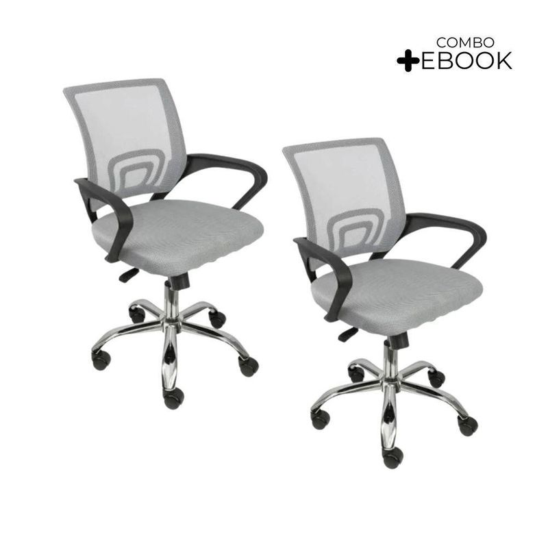 Kit 2 Cadeiras De Escritório Oficial Begonia Tela Mesh Ergonômica CinzaCadeira De Escritório Tela Mesh Begonia Ergonômica GiratóriaA escolha de uma cadeira adequada desempenha um papel crucial na prevenção de possíveis lesões. Com a cadeira Begônia, você garante o conforto e bem-estar essenciais para suas atividades diárias. Além disso, sua versatilidade permite que ela se encaixe perfeitamente em diversos ambientes, seja em casa, no escritório ou home office, proporcionando um toque moderno e harmonioso.Personalização para seu confortoAproveite ao máximo o ajuste de altura desta cadeira. Isso lhe permitirá adaptar a posição do seu tronco em relação à mesa, proporcionando um nível de conforto específico para suas necessidades individuais.Promovendo o bem-estarOs apoios de braço foram cuidadosamente projetados para melhorar sua postura enquanto escreve, facilitando a incorporação natural quando necessário.Mobilidade sem esforçoAs rodas integradas garantem facilidade de movimento em seu espaço. Você não só poderá movê-la com tranquilidade, mas também desfrutará da conveniência das rotações de 360º, eliminando a necessidade de reajustar sua posição ou deslocar-se fisicamente. Escolha a cadeira Begônia para elevar seu conforto e eficiência, enquanto cuida do seu corpo e do seu ambiente de trabalho, estudo ou lazer.AlturaTotal: 100-90 cmBraço até o chão: 75-63 cmAssento até o chão: 58-46 cmEncosto: 48 cmBraço: 28 cmLargura1 Perna: 25 cm2 Pernas: 50 cmAssento: 45 cmEncosto: 40,5 cmBraço: 4,5 cmDe um braço ao outro: 54 cmComprimentoEncosto: 2 cmAssento: 47,5 cmBraço: 30 cmPeso: 5,5 kgEstrutura: Nylon e aço cromadoRevestimento: Nylon, Tela MeshBraço: PolipropilenoAssento: Madeira multilaminadaPeso máximo recomendado: 120 KgAcompanha E-book Exclusivo!