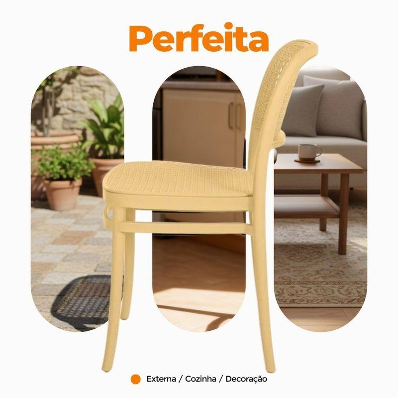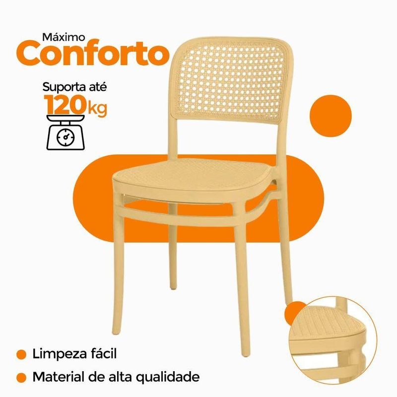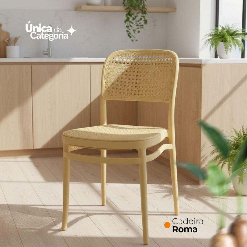 Kit 2 Cadeiras De Jantar Roma Para Sala E Cozinha Bege Cadeira de Jantar Roma para Sala e Cozinha BegeDesign e EstiloCom visual moderno e elegante, a Cadeira Roma traz um toque sofisticado à decoração. Seu encosto e assento apresentam leve inclinação ergonômica, garantindo conforto duradouro durante as refeições ou nas conversas à mesa.Material e DurabilidadeProduzida 100% em polipropileno de alta qualidade, a cadeira oferece excelente resistência e durabilidade. Com peso aproximado de 5?kg, suporta até 120?kg e contribui para um ambiente agradável e funcional.Conforto e PraticidadeO assento e encosto foram ergonomicamente projetados para oferecer suporte e conforto prolongado. A limpeza é simples e rápida: basta um pano úmido para manter a peça com aspecto impecável.Dimensões e Especificações Técnicas:Altura total: 85?cmLargura total: assento varia entre 34?cm a 41,5?cmProfundidade total: 42?cmComprimento: 42 cmGarantiaContempla 3 meses de garantia contra defeitos de fabricação, reforçando a segurança da sua compra. Destaques Característica: Benefício:Polipropileno Premium - Leveza, resistência e fácil manutençãoSuporta até 120?kg - Uso seguro e estabilidade para várias pessoasProjeto ergonômico - Conforto prolongado, ideal para refeições e lazerMedidas compactas - Facilmente encaixável em diferentes ambientesGarantia de fábrica - Assistência rápida e confiávelIdeal para: Salas de jantar, cozinhas gourmet, varandas, áreas de lazer ou ambientes de estar. Perfeita para quem busca design contemporâneo aliado à funcionalidadeAcompanha E-book!