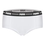 Descrição:O Kit 2 Calcinhas Puma Mini Boxer Feminino é ideal para as mulheres que buscam variedade e conforto. O modelo é confeccionado em modal, tecido de fibra natural, muito macio, leve e com alta respirabilidade. Conta com modelagem mini boxer, cintura baixa com laterais largas e possui cós elástico em cor contrastante com o logo da marca. Fundo com forro em algodão dando maior conforto durante o uso. Cores: Preto e Branco/Preto. Medidas aproximadas (cm): P: 29x20 / M: 31x22 / G: 33x24 /GG: 35x26 (Largura x Comprimento). INFORMAÇÕES Referência: 270200. Composição: 96% Modal e 04% Elastano. Forro: 100% Algodão. Gênero: Feminino.