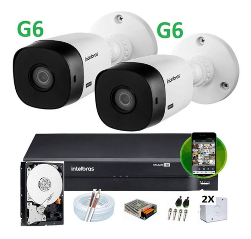 01 - DVR 4ch MHDX INTELBRAS 02 - Câmeras infravermelho VHD 1120 G6 INTELBRAS - Lançamento 01 - Fonte 12V bivolt 5 amper 04 - Conector BNC vídeo c/ parafuso 1º Linha 02 - Conector P4 macho c/ borne 1º Linha 01 - Rolo de cabo 4mm bipolar 80% malha (50 metros) DUPLA BLINDAGEM 01 - Hd 160gb (instalado no dvr) 01 - Mouse USB 02- Caixa cftv para conectores IP65