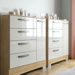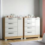 Kit 2 Cômoda Elena Poquema Damasco/off WhiteO Kit com 02 Comodas Elena Poquema e ideal para quem busca mais organizacao e praticidade no dia a dia, oferecendo amplo espaco interno para acomodar roupas, acessorios e diversos itens pessoais. Com um design funcional e pensado para ambientes residenciais, o conjunto proporciona melhor aproveitamento do espaco, mantendo tudo sempre acessivel e bem distribuido. E uma solucao versatil para quartos ou closets, unindo organizacao eficiente e uso pratico no cotidiano.Caracteristicas: Kit composto por 02 comodas Cada comoda com 01 porta Cada comoda com 04 gavetas Dobradicas metalicas Corredicas metalicas Estrutura em MDP de 12 mm Acabamento em pintura U.V. Puxadores plasticos Pes plasticos Produto entregue desmontado Montagem por conta do cliente Dimensoes: Altura: 95 cm Largura: 86 cm Profundidade: 40 cm Conteudo da embalagem: 02 comodas Elena Garantia 3 Meses