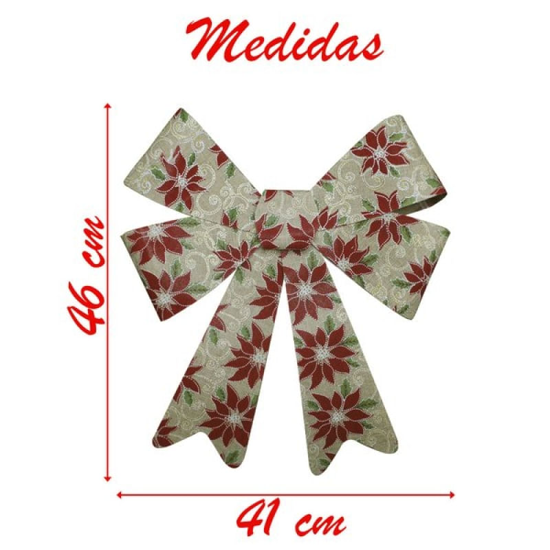 Kit 2 Enfeite Árvore Natal Laço Decorado Com Flores 46 Cm - O Natal é tempo de celebrar o amor, comemorar a vida com novas esperanças, novos sonhos e também é a hora de deixar a casa mais bonita para receber a família nesta data tão importante. Você poderá realizar um Natal com toque de charme e bom gosto que contagiará seus convidados com o espírito natalino, deixando a sua casa decorada de uma forma diferente e apropriada para a data mais esperada do ano. Indicações de uso: - Decoração natalina - Ambiente corporativo e residencial Descrição Técnica: Material: PVC, Poliéster Altura: 46 Cm Largura: 41 Cm Contém: 2 Unidades Características Gerais do Produto: • Material: Plástico • Cor: Bege Garantia: • Garantia do site - 1 Mês
