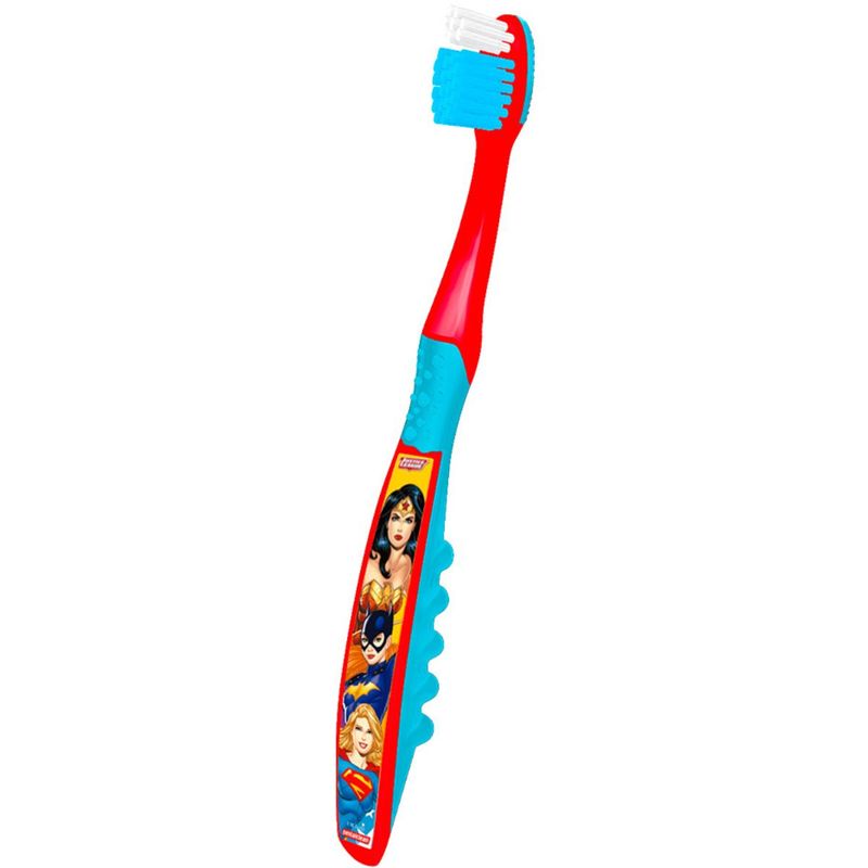 KIT COM 2 ESCOVAS DE DENTES HERÓIS LIGA DA JUSTIÇA - MACIA - 3 ANOS+ - DENTALCLEANA Escova Dental Infantil possui cabo emborrachado, cerdas arredondadas e polidas que garantem conforto na hora da escovação.Ela é ideal para transformar a higiene oral em uma missão divertida para seus filhos e sem stress para você, afinal, escovar os dentes também pode ser divertido. Recomendada para crianças de 3 a 6 anos. A escova possui cabo ergonômico que proporciona maior segurança e conforto na hora da escovação, possui power tip, ponta de cerdas com corte perfeito para limpar até os últimos dentes. Além disso, conta com os personagens em seu cabo, é o incentivo perfeito para as crianças fazerem a higienização diariamente. Esse KIT contém:-2 ESCOVAS DE DENTES DA LIGA DA JUSTIÇA MACIA 3 ANOS+