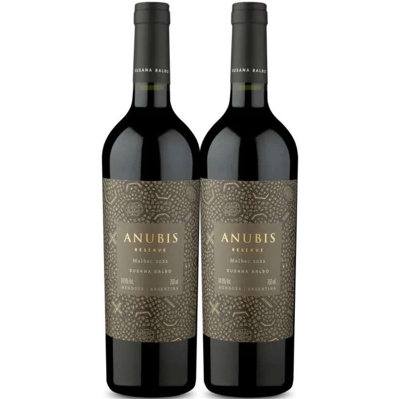 Kit 2 Garrafas Vinho Tinto Anubis Reserva Malbec 750mlKit 2 garrafas 750mlRegião: Mendoza - ArgentinaProdutor: Susana Balbo WinesTipo: Tinto SecoUva: 100% MalbecAmadurecimento: 9 meses em barricas de carvalho francêsÁlcool: 14%Vinho suave e suculento no paladar com sabores de frutas pretas e taninos aveludados. Harmoniza bem com churrasco, hambúrguer, queijos e massas. Servir entre 16C a 18C.História:Produzido pela Susana Balbo, a primeira enóloga mulher da Argentina e eleita várias vezes a mulher mais influente do mundo do vinhos. Seu nome é uma homenagem ao Deus Egípcio das Bebidas e Gastronomia. O vinho retrata a máxima expressão de um Malbec ao natural.