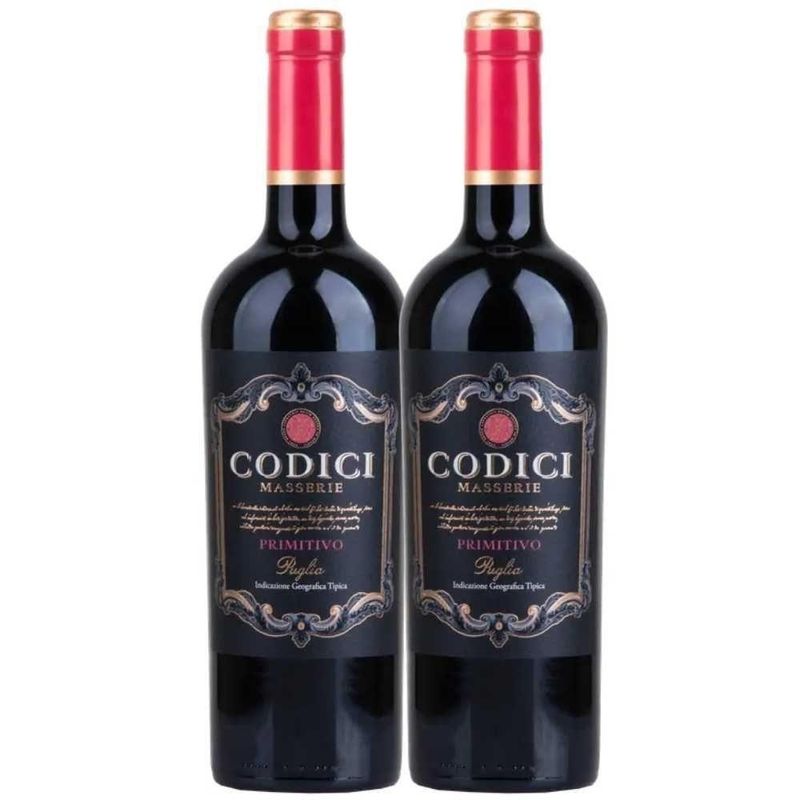 Kit 2 Garrafas Vinho Tinto Codici Primitivo Puglia 750mlKit 2 garrafas 750mlRegião: Puglia - ItáliaProdutor: MGMTipo: Tinto Meio SecoUva: PrimitivoAmadurecimento: 4 meses de maturação em barricas de carvalho francêsÁlcool: 13,5%Um Primitivo que vai além das frutas maduras, com notas de especiarias e temperos mediterrâneos. Na boca, é intenso, sedoso, com um toque suave e um final que pede mais. Ideal com assados, carnes vermelhas e massas.História:Codici representa as paixões culturais, da natureza, escrituras antigas e tradições das terras da puglia. Essa região é detentora de uma rica zona rural, fonte fundamental de vinhos que são os «códigos» da cultura. Uvas selecionadas com rígidos padrões de qualidade formam são a base de codici.