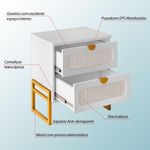Kit 2 Mesas De Cabeceira Luxo Titanium Com Fino Acabamento 45cm - Branco / DouradoA Mesa de Cabeceira Titanium é a combinação perfeita entre funcionalidade e estilo. Com design industrial moderno, ela traz sofisticação ao ambiente sem abrir mão da praticidade, sendo ideal para compor quartos contemporâneos com personalidade.Estilo Industrial com toque elegante, une o visual robusto do metal com a leveza e delicadeza do padrão rattan nas frentes das gavetas. Uma peça versátil que combina facilmente com diferentes tipos de decoração.Funcionalidade no dia a dia, conta com duas gavetas amplas, perfeitas para guardar objetos pessoais, eletrônicos, livros ou itens de uso noturno. Os puxadores embutidos garantem um visual mais limpo, enquanto as corrediças metálicas proporcionam abertura suave e segura.CARACTERÍSTICAS TÉCNICASTipo: Mesa de CabeceiraModelo: TitaniumCor: BrancoCor da Base: DouradoEstrutura: MDP com acabamento em pintura UVPés: Metal com pintura eletrostáticaPossui 2 gavetas: Corrediças metálicasFrentes decorativas em padrão rattanPuxadores embutidosDesign: Moderno, funcional e eleganteGarantia: 3 meses contra defeitos de fabricaçãoMEDIDAS:Altura: 64,8cmLargura: 45cmComprimento: 35,7cmATENÇÃOIMAGENS MERAMENTE ILUSTRATIVAS, PODENDO HAVER UMA PEQUENA VARIAÇÃO DE COR DEPENDENDO DE CADA TELA OU MONITOR E ATÉ MESMO SUA PERCEPÇÃO VISUAL.Kit 2 Mesas de Cabeceira Luxo Titanium com Fino Acabamento 45cm - Branco / Dourado