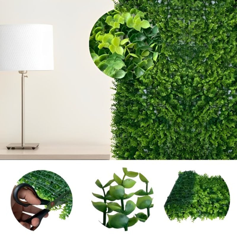 Kit 2 Placas Grama Muro Inglês Jardim Artificial 40x60cm - Placa De Folhas Para Muro Inglês Traz a beleza e o frescor de um jardim verdejante para o seu espaço, sem a necessidade de manutenção constante. Com um design realista e detalhado, essa placa de grama artificial recria com perfeição a aparência e a textura do muro inglês, trazendo um toque de natureza para qualquer ambiente interno ou externo. Feita com materiais de alta qualidade, essa placa é resistente aos elementos, não desbota sob a luz solar e mantém sua aparência exuberante ao longo do tempo. Uma das principais vantagens desse produto é a praticidade. Ao optar por uma grama artificial, você economiza tempo e recursos, pois não há necessidade de regar, podar ou fertilizar. Além disso, a grama artificial é resistente às condições climáticas, permanecendo verde e vibrante durante todas as estações do ano. muro ingles h22728 1 Aplicação: Essa placa de grama artificial é versátil e pode ser aplicada em uma variedade de espaços. Ela é perfeita para criar um jardim vertical em paredes, seja em ambientes residenciais, comerciais ou até mesmo em eventos especiais. Além disso, pode ser usada para decorar varandas, terraços, áreas de lazer ou qualquer área em que você deseje adicionar um toque de natureza sem a preocupação de cuidados intensivos. Características: Cor: Verde; Diferentes tons de verde, que em conjunto trazem uma aparência realista; Largura: 40cm; Comprimento: 60cm; Espessura: 8cm; Altura dos "galhos": 7 à 8cm; Material: Plástico; Conteúdo da Embalagem: • 2 Painéis Muro Inglês de 40cm x 60cm; Este kit cobre uma área de 0,60m X 0,80m; Características Gerais do Produto: • Material: Plástico • Modelo: Jardim Vertical Artificial Muro Inglês Garantia: • Garantia de fábrica - 1 Mês