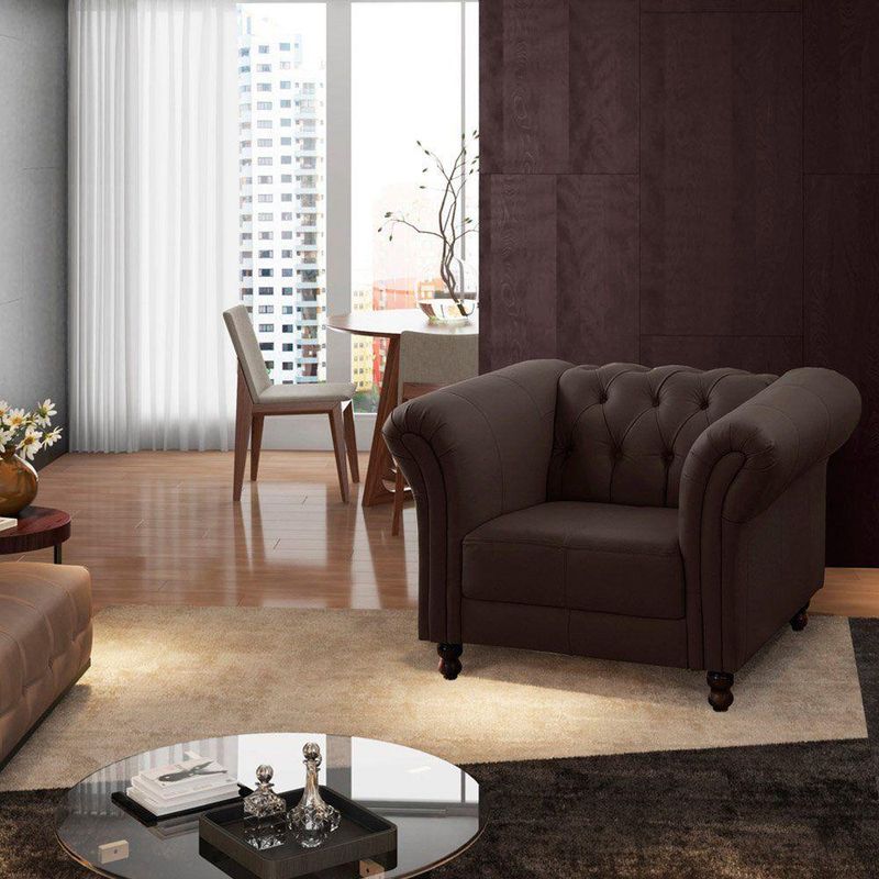 Kit 02 Poltronas Decorativa Couro Marrom Gran BeloCapaz de transformar sua sala de estar, acrescentando toda a sua elegância e aconchego ao ambiente. Por ser produzido em couro um material nobre, confortável ao toque é muito resistente a danos diversos.Especificações técnicas:- Largura: 100cm- Altura: 75cm- Profundidade: 88cm- Profundidade do Assento: 50cm- Largura do Assento: 58cm- Altura do Assento ao Chão: 40cm- Largura do Braço: 25cm- Altura do Encosto: 35cm- Altura dos Pés: 12cm- Material da Estrutura: Madeira Maciça de Eucalipto- Encosto e Assento: Espuma D26 sobre Percintas Elásticas e Fibra Siliconada- Material dos Pés: Madeira Maciça Tingida- Quantidade de Pés: 04- Tipo de Pés: Torneados Fixo- Revestimento: Couro- Peso Suportado: 100kg- Marca: Gran Belo- Garantia: 3 Meses