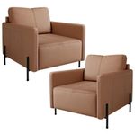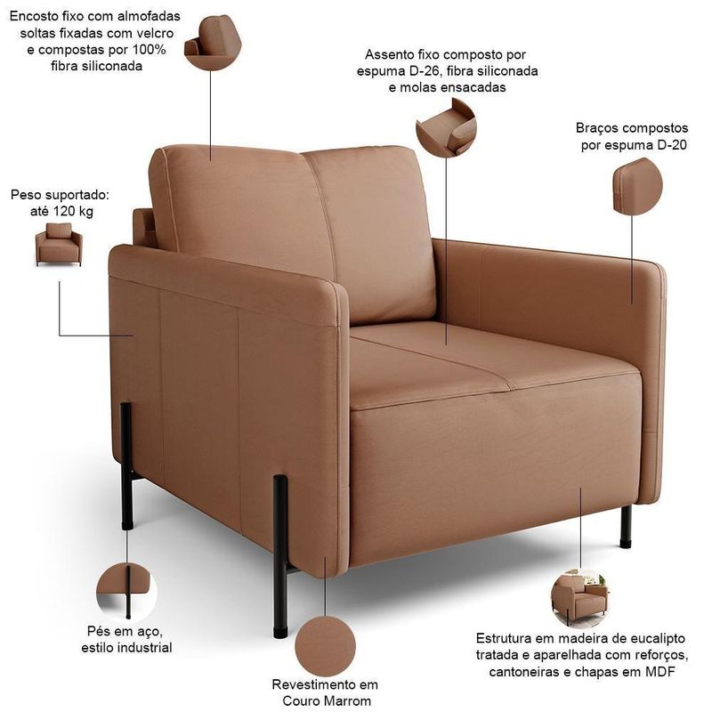 Kit 2 Poltronas Decorativa Para Sala Living Pés Industrial Domani L06 Couro Marrom - Lyam DecorConheça o Kit 02 Poltronas Decorativa Domani, o estofado que sua casa estava esperando! Com um design sofisticado, essa poltrona moderna é perfeita para quem busca adicionar um toque de elegância a qualquer ambiente.Seus pés metálicos em estilo industrial conferem não somente beleza, mas também um charme contemporâneo que se destaca em sala de estar, living, escritório ou até mesmo no seu cantinho de leitura. Confortável e versátil, a poltrona industrial Domani harmoniza com diversos estilos de decoração, sendo a escolha ideal para quem quer ousar sem abrir mão do conforto. Transforme seu lar em um verdadeiro espaço de estilo e aconchego com a Poltrona Decorativa Domani. Adquira a sua agora e veja a mágica acontecer em cada canto! Dimensões total do produto (L x A x P) 80 x 86 x 92 cm Medidas Internas Largura livre do assento: 70 cm Altura do chão ao assento: 48 cm Encosto (L x A): 70 x 45 cm Características: Estrutura em madeira de eucalipto tratada e aparelhada com reforços, cantoneiras e chapas em MDF. Revestimento em tecido Couro de alta qualidade na tonalidade Marrom. Encosto fixo com almofadas soltas fixadas com velcro e compostas por 100% fibra siliconada. Assento fixo composto por espuma D-26, fibra siliconada e molas ensacadas. Pés em aço, estilo industrial. Peso suportado: até 120 kg cada. - Por se tratar de estofado as medidas podem ter uma pequena variação de até 3 cm. - A tonalidade do produto real poderá ter ligeira variação devido o lote de tecidos. - A limpeza deve ser feita com pano levemente umedecido em água limpa, sem esfregar, não utilizar produtos abrasivos, desengordurantes, álcool ou solvente. Observações importantes: - Produto para uso residencial em ambiente interno, não devendo ficar exposto diretamente ao sol, calor e umidade excessivos. - Pode haver alguma diferença de tonalidade entre a imagem e o produto real, por conta do tratamento de imagens e a calibração de cores do seu monitor. - As imagens são meramente ilustrativas, não acompanham objetos de decoração e eletrônicos. - Ao receber a mercadoria, o cliente deve verificar as condições da embalagem, caso haja alguma avaria não assine o comprovante de recebimento. - Montagem, desmontagem e outras instalações serão de responsabilidade do cliente. Não nos responsabilizamos, no ato da entrega, por subir escadas/elevadores ou pelo transporte por guincho em apartamentos. Eventuais despesas são de responsabilidade do comprador. - Confira as dimensões do produto e certifique-se de que passará normalmente por supostos elevadores, portas, escadas e/ou corredores de sua residência. SupplierSimpleName: Kit 2 Poltronas Decorativa Para Sala Living Pés Industrial Domani L06 Couro Marrom - Lyam Decor | ProductLength: 92 cm | ProductWidth: 80 cm | ProductWarranty: 90 dias após o recebimento do produto | Profundidade: 92 cm | ProductHeight: 86 cm | ProductInstructions: Produto para uso em ambiente interno, nao devendo ficar exposto ao sol, calor e umidade excessivos. | ColorSimple: Marrom | Fabricante: Lyam Decor | Peso: 100 Kg | Cor dos pés: Preto | OriginState: PR | Mecanismo de abertura do produto: na | Linha: Sala de Estar, Living | Tipo de produto: Poltrona Decorativa | Material do estofamento: Couro | Unidades por kit: 2 | Material: Madeira de Eucalipto | Color: Marrom | Cor: Marrom | ProductWeight: 100 kg | Estilo: Moderno, Industrial | ColorFamily: Marrom | MaterialFamily: Madeira de Eucalipto | ColorSupplier: Marrom | Orientação do Sofá: Frontal | OriginCountry: Brasil | Peso máximo suportado: 120 kg | Material de enchimento do encosto: Fibras Siliconadas | Formato do sofá: Linear | SizeDescription: Altura: 86 cm x Largura: 80 cm x Profundidade: 92 cm | ProductContents: 02 Poltronas | Requer montagem: Não, apenas o encaixe dos pés | Altura: 86 cm | Densidade da espuma do assento: D-26 | Desenho do tecido: Liso | Model: Domani | Largura: 80 cm | Quantidade de Caixas de embalagem: 2
