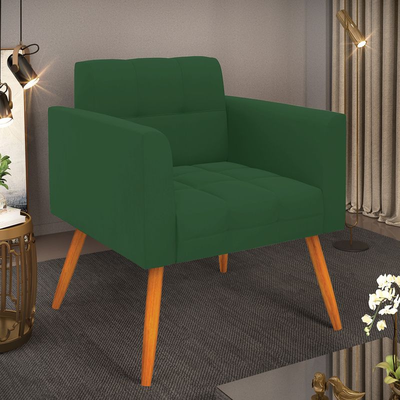 Você gosta de colecionar vários momentos memoráveis com sua família e amigos? Que tal recebê-los, com móveis de altíssima qualidade que só a D'Rossi tem? O Kit 2 Poltronas Elisa é adequado para você! Seu design retrô é a grande tendência do momento. Pode ser utilizado em diversos espaços da casa, em salas, hall de entrada, quartos, cozinhas, varanda, sacada, escritório, dentre outros. Contém as seguintes características: A estrutura é feita de madeira de Eucalipto 100% de reflorestamento, e os Pés Palito Castanho, além de serem resistentes e duráveis, suportam em média até 120 kg. Assento, encosto e braços, contém enchimento de espuma D-23 e é estofada em tecido Veludo, no tom Verde, que oferece muito conforto e resistência ao sentar, com aquela sensação de maciez e aconchego. Possui também, detalhes de costura no encosto e assento, resultando em um acabamento impecável, conferindo muito mais valor e elegância ao seu espaço. Para complementar a decoração com essas lindas poltronas, a dica é utilizar mantas, almofadas ou vasinho de flor. E pronto, seu cantinho estará perfeito para descansar e relaxar! Aqui, você encontra várias opções, para que seus amigos e familiares se sintam acolhidos. Garanta já seu Kit 2 Poltronas. Dimensões da Poltrona: Altura total: 82 cm Largura total: 66 cm Profundidade total: 63 cm Altura do encosto: 35 cm Largura do assento: 46 cm Profundidade do assento: 47 cm Altura do chão ao assento: 47 cm Espessura do assento: 17 cm Tamanho dos pés: 30 cm Espessura do braço: 10 cm Peso: 13 kg Especificações do Produto Estrutura: Madeira Eucalipto Espuma: D-23 Tecido: Veludo Tipo de pés: Pés Palito Castanho Peso suportado: Até 120 Kg Garantia: 90 dias contra defeito de fabricação Montagem: O produto vai montado, apenas rosquear os pés Instruções de limpeza: Utilizar um pano limpo e levemente úmido Você irá receber: 02 Poltronas - Entregue em: 01 Volume Observações Relevantes - Todos os produtos vão embalados com total segurança; - As cores dos produtos podem sofrer alterações dependendo do seu monitor; - Para futuras compras, não garantimos a mesma tonalidade de cor, pois existe variação a cada lote do fabricante do tecido; - As imagens são meramente ilustrativas, não acompanham objetos de decoração e eletros; - Confira as dimensões do produto no momento da compra e certifique-se de que passará normalmente por escadas, elevadores, portas e corredores; - Importante: Por se tratar de estofado as medidas podem ter uma pequena variação em até 3 cm; - Não nos responsabilizamos no ato da entrega por montagens, desmontagens, instalações de produtos; - Não nos responsabilizamos no ato da entrega por subir escadas, elevadores, nem utilização de guinchos ou equipamentos similares para acesso a pisos superiores em apartamentos; - A entrega do produto é realizada em todo território nacional, até onde as rodovias alcançam, entregas fluviais ou aéreas devem ser cotadas a parte; - Observando as orientações acima, evita-se futuros desagrados ou imprevistos com a entrega do produto. Havendo despesas adicionais, serão de responsabilidade do cliente;