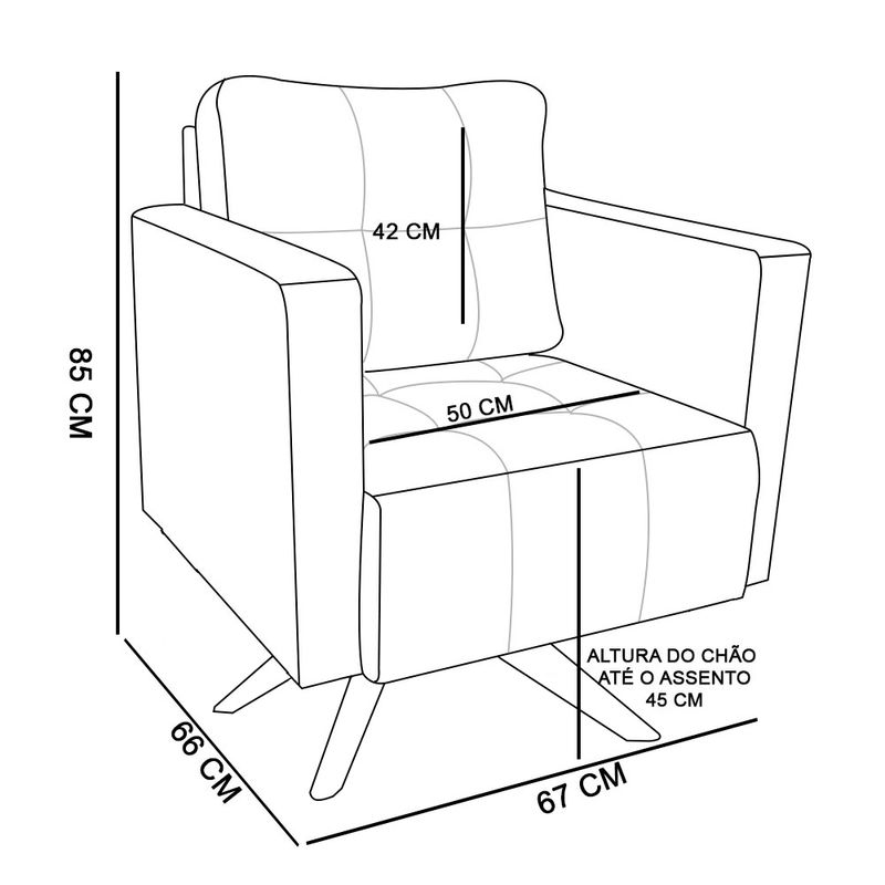 A poltrona Lívia é para aqueles que buscam comodidade e sofisticação. Ela promove um ótimo nível de conforto, graças ao seu design minimalista e aconchegante. Sem dúvidas ela dará aquele toque refinado que seu ambiente precisa! Uma dica legal é decorá-la com almofadas de diferentes tons e estilos, que mais combinem com sua personalidade, criando um ambiente ainda mais incrível! Sua estrutura é produzida em Base giratória de Madeira MA30 e percintas elásticas. Possui também preenchimento em espuma de excelente qualidade, densidade D-23 no assento e nos braços, no encosto de fibra siliconada. Conta com revestimento em Suede no tom Rosa Bebê, um tecido fácil de limpar, que confere maior resistência, maciez e durabilidade à peça. Que tal levá-la para sua casa ou escritório! Escolha seu Kit 02 Poltronas Lívia e dê vida ao seu ambiente com conforto e elegância. Dimensões Poltrona: Altura total: 85 cm Largura total: 67 cm Profundidade total: 66 cm Altura do encosto: 42 cm Largura do assento: 50 cm Profundidade do assento: 47 cm Altura do chão ao assento: 45 cm Espessura do assento: 23 cm Altura do chão ao braço: 65 cm Altura interna do braço: 23 cm Espessura do braço: 8 cm Peso: 18 kg Especificações do Produto: Estrutura: Madeira Eucalipto Espuma: D-23 Tecido: Suede Tipo de pés: Base de Madeira MA30 Peso suportado: Até 120 Kg Garantia: 90 dias contra defeito de fabricação Montagem: O produto vai montado, apenas parafusar a base Instruções de limpeza: Utilizar um pano limpo e levemente úmido Você irá receber: 03 Volumes com 02 Poltronas e 02 Bases Giratória Observações Relevantes - Todos os produtos vão embalados com total segurança; - As cores dos produtos podem sofrer alterações dependendo do seu monitor; - Para futuras compras, não garantimos a mesma tonalidade de cor, pois existe variação a cada lote do fabricante do tecido; - As imagens são meramente ilustrativas, não acompanham objetos de decoração e eletros; - Confira as dimensões do produto no momento da compra e certifique-se de que passará normalmente por escadas, elevadores, portas e corredores; - Importante: Por se tratar de estofado as medidas podem ter uma pequena variação em até 3 cm; - Não nos responsabilizamos no ato da entrega por montagens, desmontagens, instalações de produtos; - Não nos responsabilizamos no ato da entrega por subir escadas, elevadores, nem utilização de guinchos ou equipamentos similares para acesso a pisos superiores em apartamentos; - A entrega do produto é realizada em todo território nacional, até onde as rodovias alcançam, entregas fluviais ou aéreas devem ser cotadas a parte; - Observando as orientações acima, evita-se futuros desagrados ou imprevistos com a entrega do produto. Havendo despesas adicionais, serão de responsabilidade do cliente;