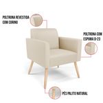 Todo mundo gosta de um ambiente bem decorado, e se for novidade melhor ainda não é mesmo? A D'Rossi, além de entregar beleza, qualidade e confiança aos clientes, ela dispõe das melhores opções em produtos, disponíveis no mercado! Se você quer um produto sofisticado, opte pela Poltrona Marisa. Ela dispõe de um tom lindo no Bege, uma cor leve, neutra e delicada que combina com qualquer estilo de decoração. Esta mobília fica perfeita na sala, escritório, quarto, varanda coberta e onde mais preferir! Sua estrutura é feita em madeira reforçada de eucalipto proveniente de reflorestamento. No assento/encosto contém um revestimento no tecido Corino, com estofamento em espuma prorelax D-23, garantindo maior conforto ao usuário. A sustentação da peça é dada pelos Pés Palito Castanho, garantindo uma resistência melhor, para relaxar o dia todo com mais comodidade. A Poltrona Marisa é ideal, para dar aquele realce que seu ambiente precisa. Tenho certeza que, esse móvel é a melhor compra que você irá fazer. Garanta já seu Kit 2 Poltronas e se acomode da melhor maneira possível! Dimensões da Poltrona: Altura total: 81 cm Largura total: 64 cm Profundidade total: 64 cm Altura do encosto: 36 cm Largura do assento: 47 cm Profundidade do assento: 48 cm Altura do chão ao assento: 45 cm Espessura do assento: 18 cm Tamanho dos pés: 30 cm Espessura do braço: 9 cm Peso: 14 kg Especificações do Produto Estrutura: Madeira Eucalipto Espuma: D-23 Tecido: Corino Tipo de pés: Pés Palito Natural Peso suportado: Até 120 Kg Garantia: 90 dias contra defeito de fabricação Montagem: O produto vai montado, apenas rosquear os pés Instruções de limpeza: Utilizar um pano limpo e levemente úmido Você irá receber: 02 Poltronas - Entregue em: 02 Volumes Observações Relevantes - Todos os produtos vão embalados com total segurança; - As cores dos produtos podem sofrer alterações dependendo do seu monitor; - Para futuras compras, não garantimos a mesma tonalidade de cor, pois existe variação a cada lote do fabricante do tecido; - As imagens são meramente ilustrativas, não acompanham objetos de decoração e eletros; - Confira as dimensões do produto no momento da compra e certifique-se de que passará normalmente por escadas, elevadores, portas e corredores; - Importante: Por se tratar de estofado as medidas podem ter uma pequena variação em até 3 cm; - Não nos responsabilizamos no ato da entrega por montagens, desmontagens, instalações de produtos; - Não nos responsabilizamos no ato da entrega por subir escadas, elevadores, nem utilização de guinchos ou equipamentos similares para acesso a pisos superiores em apartamentos; - A entrega do produto é realizada em todo território nacional, até onde as rodovias alcançam, entregas fluviais ou aéreas devem ser cotadas a parte; - Observando as orientações acima, evita-se futuros desagrados ou imprevistos com a entrega do produto. Havendo despesas adicionais, serão de responsabilidade do cliente;